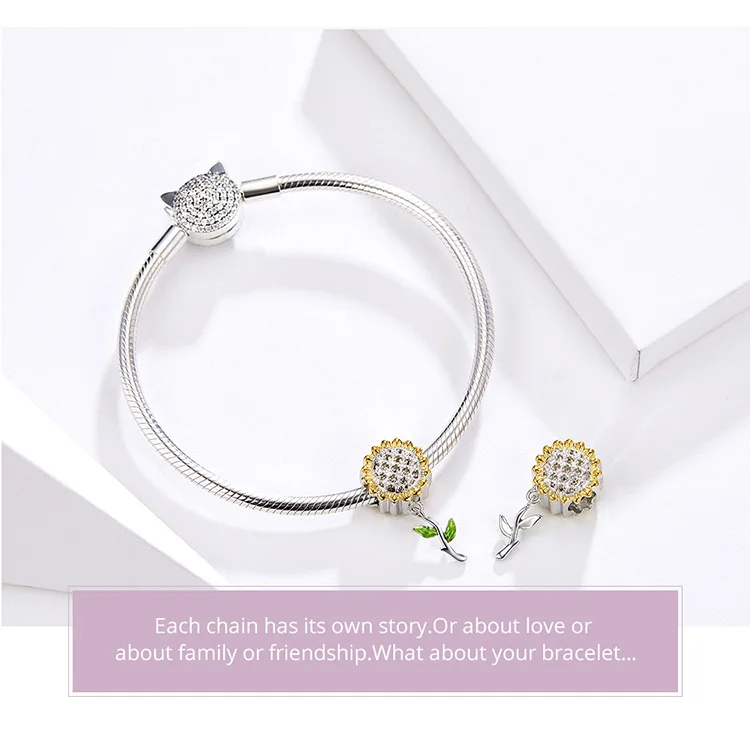 Bamoer, серебро 925 пробы, металлические бусины, подвеска в виде подсолнуха, подходит для основного браслета, блестящий воздушный шар, кошачий Шарм, Женские Ювелирные изделия