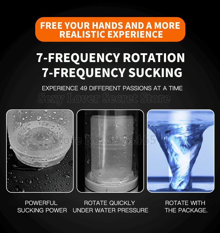 Мужской мастурбатор с автоматическим вращением на присоске, 7 регулируемых режимов