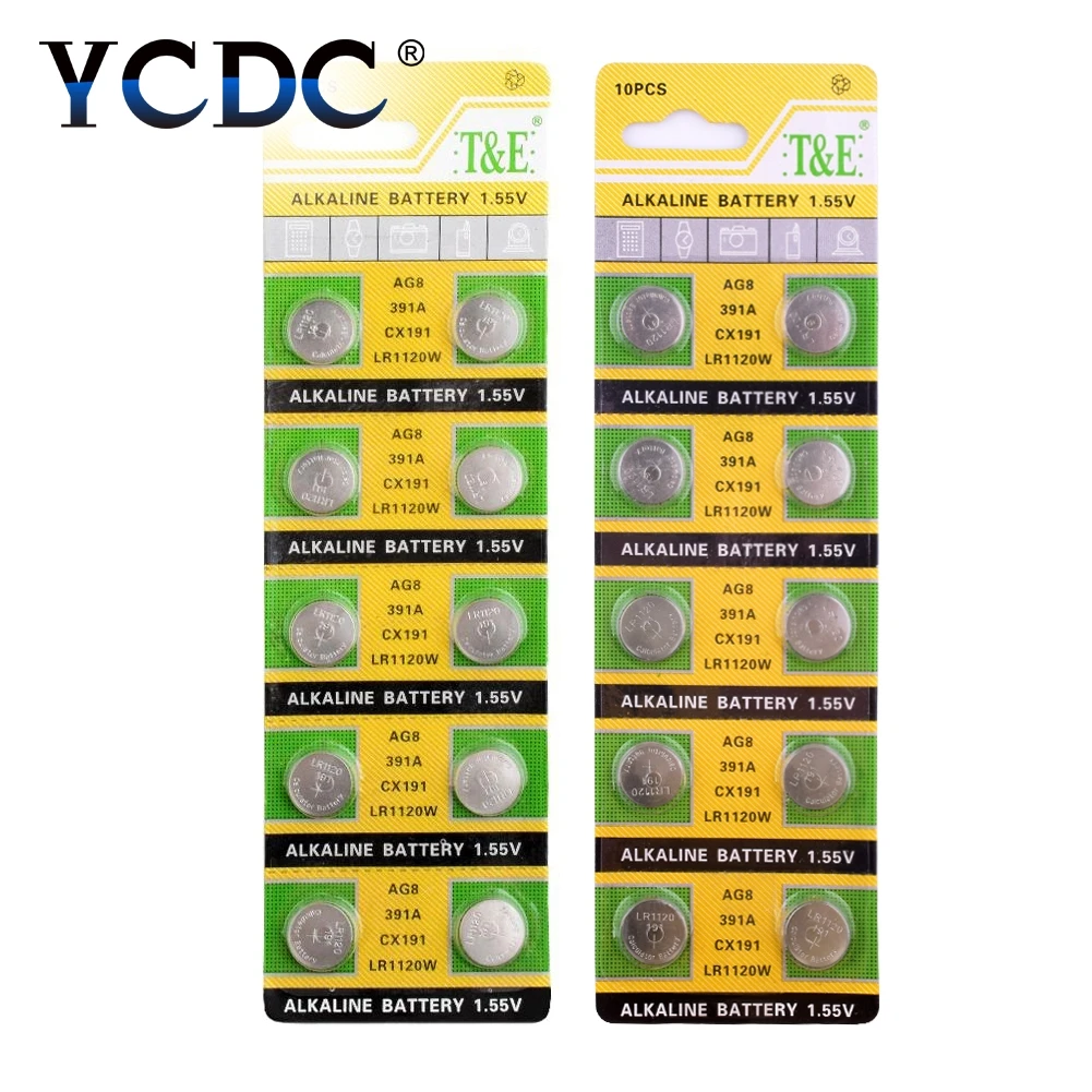 10 лампочек AG8 LR1120 391 SR1120, кнопочные батареи 191 LR55, щелочная монетная батарея 1,55 в LR1120W CX191 для часов, игрушек, пультов дистанционного управления