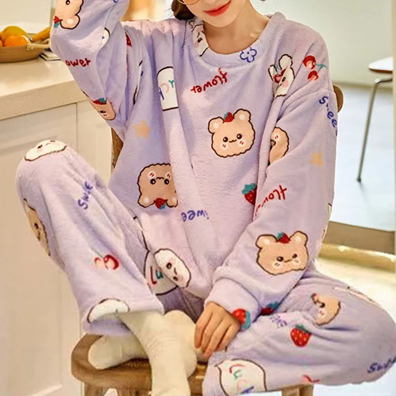 Новинка зимняя фланелевая теплая Пижама корейский кавайный мультяшн...
