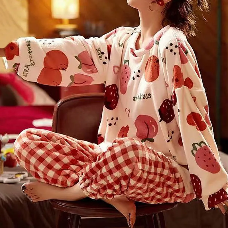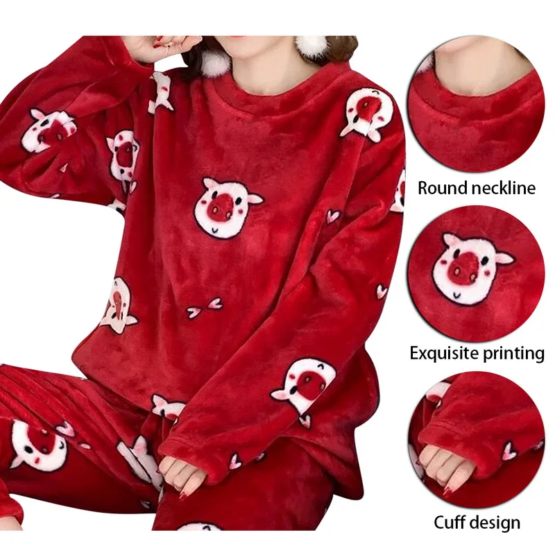 Characteristics 1Hot Women Winter Flannel Pajama Set