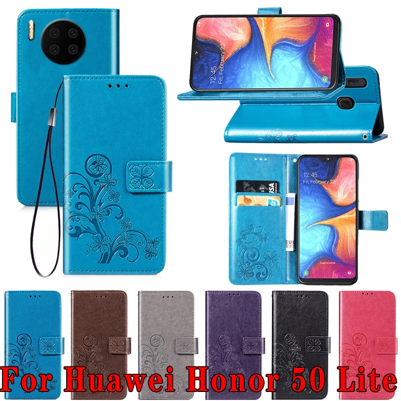 Кожаный чехол-бумажник с подставкой и цветочным рисунком для телефона Huawei Honor 50 Lite, мягкий чехол для телефона