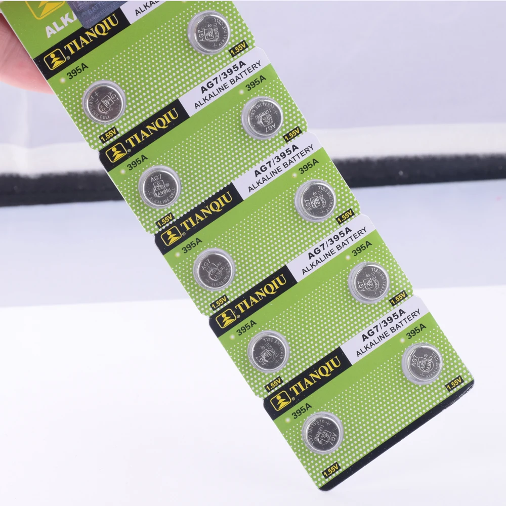 Кнопочные батарейки 10шт.упак. AG7 LR927 LR57, батарейки 395A, батарейки, щелочные батарейки 1,55 в, SR927W 399 GR927 для часов, игрушек, дистанционная скидка 52%