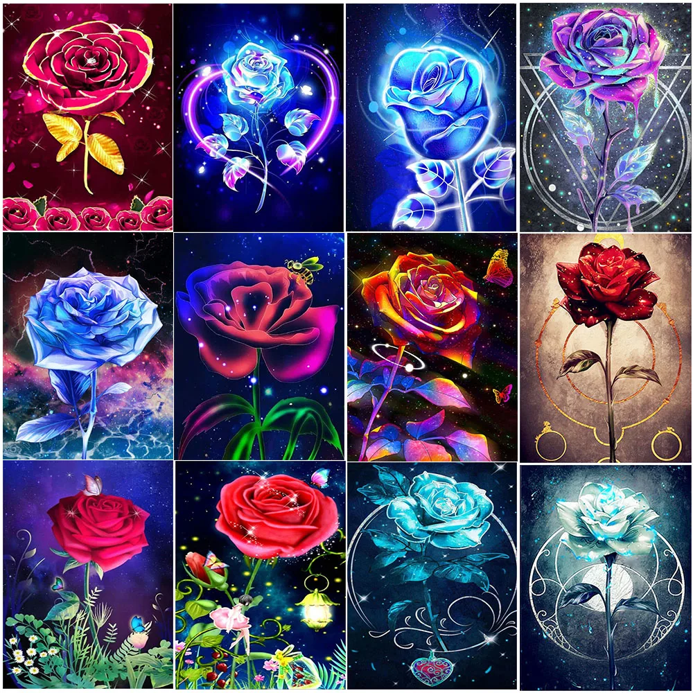 Полноразмерная квадратнаякруглая 5D алмазная живопись, цветы, розы,...