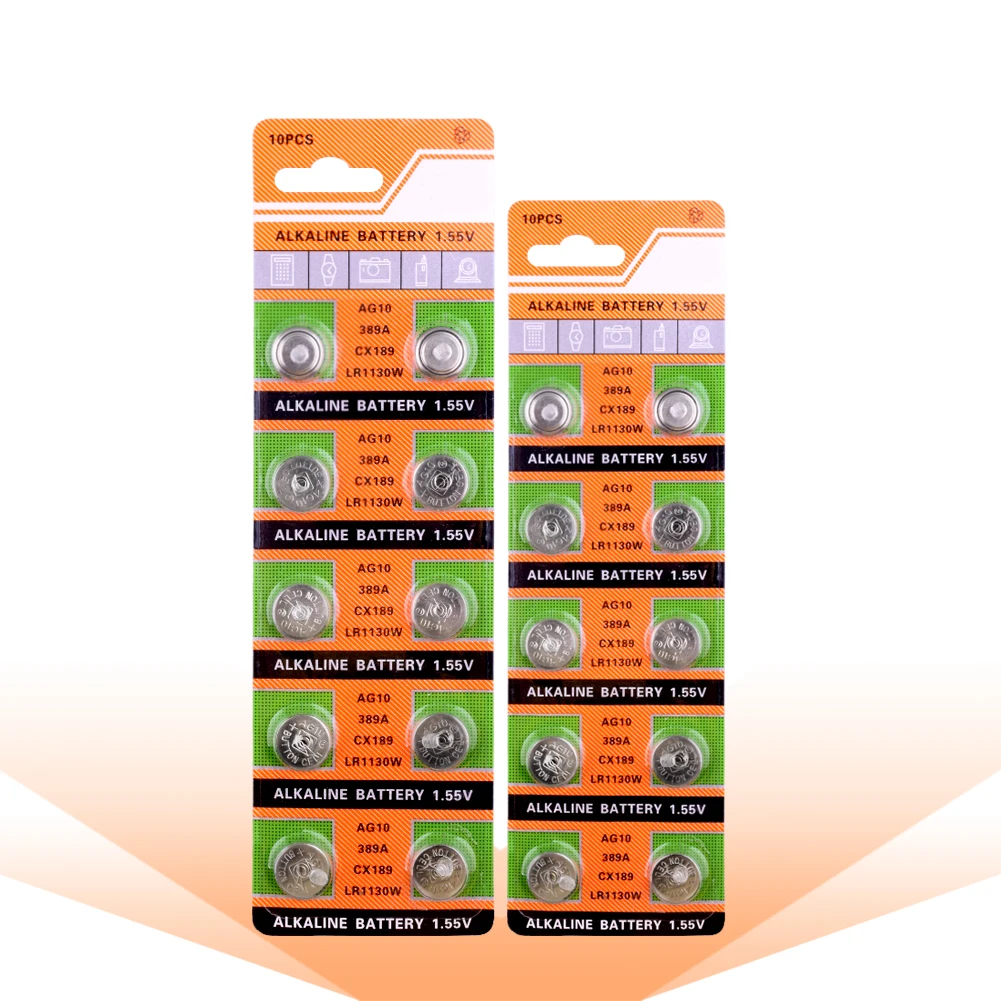 20 шт., батарейки AG10 LR1130 SR1130, 1,55 389A 390A D189 G10 G10A GP89A KA54 L1131 LR54 RW89