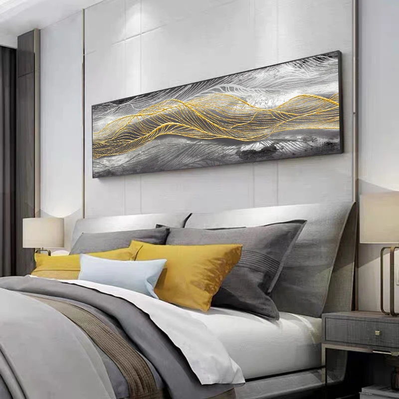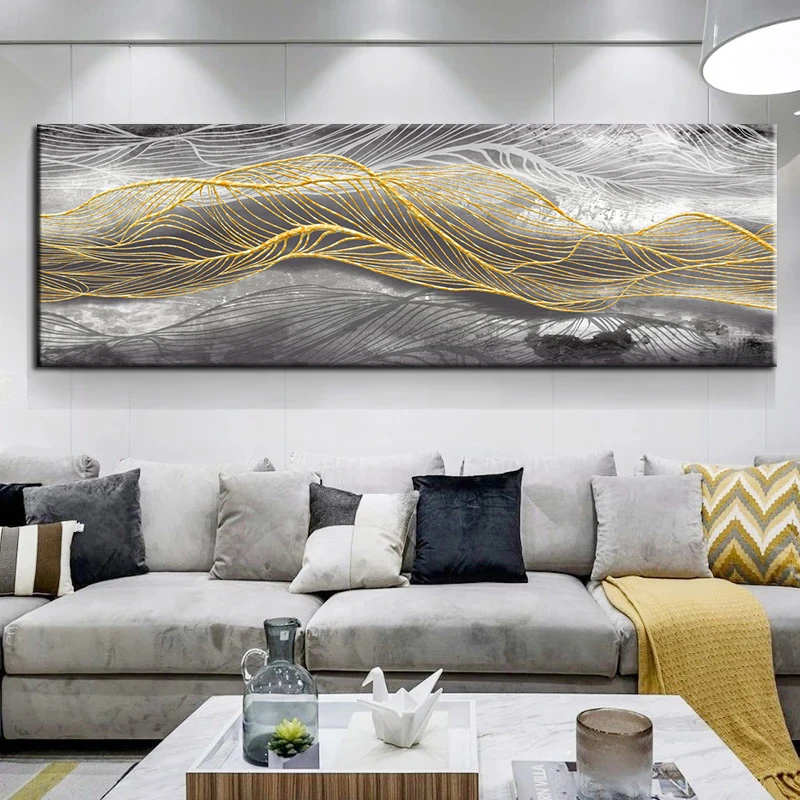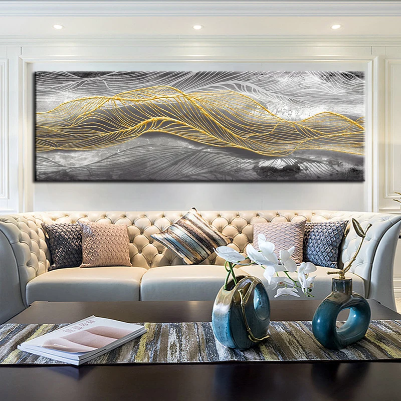Роскошная абстрактная картина HD с золотыми и серебряными линиями, пейзаж, холст, настенные картины, плакаты, украшение для гостиной и дома