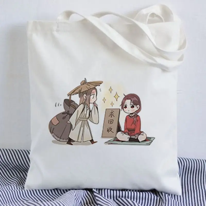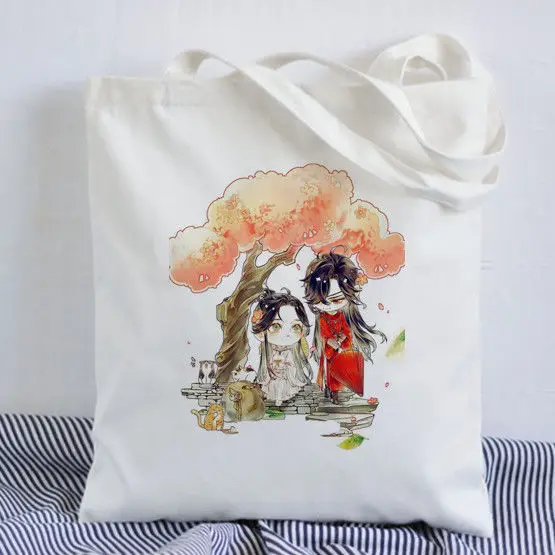 Сумка-шоппер с аниме принтом tian guan ci fu, сумка для покупок, сумка-тоут, сумка через плечо, Холщовая Сумка большой вместимости для колледжа, Прямая поставка