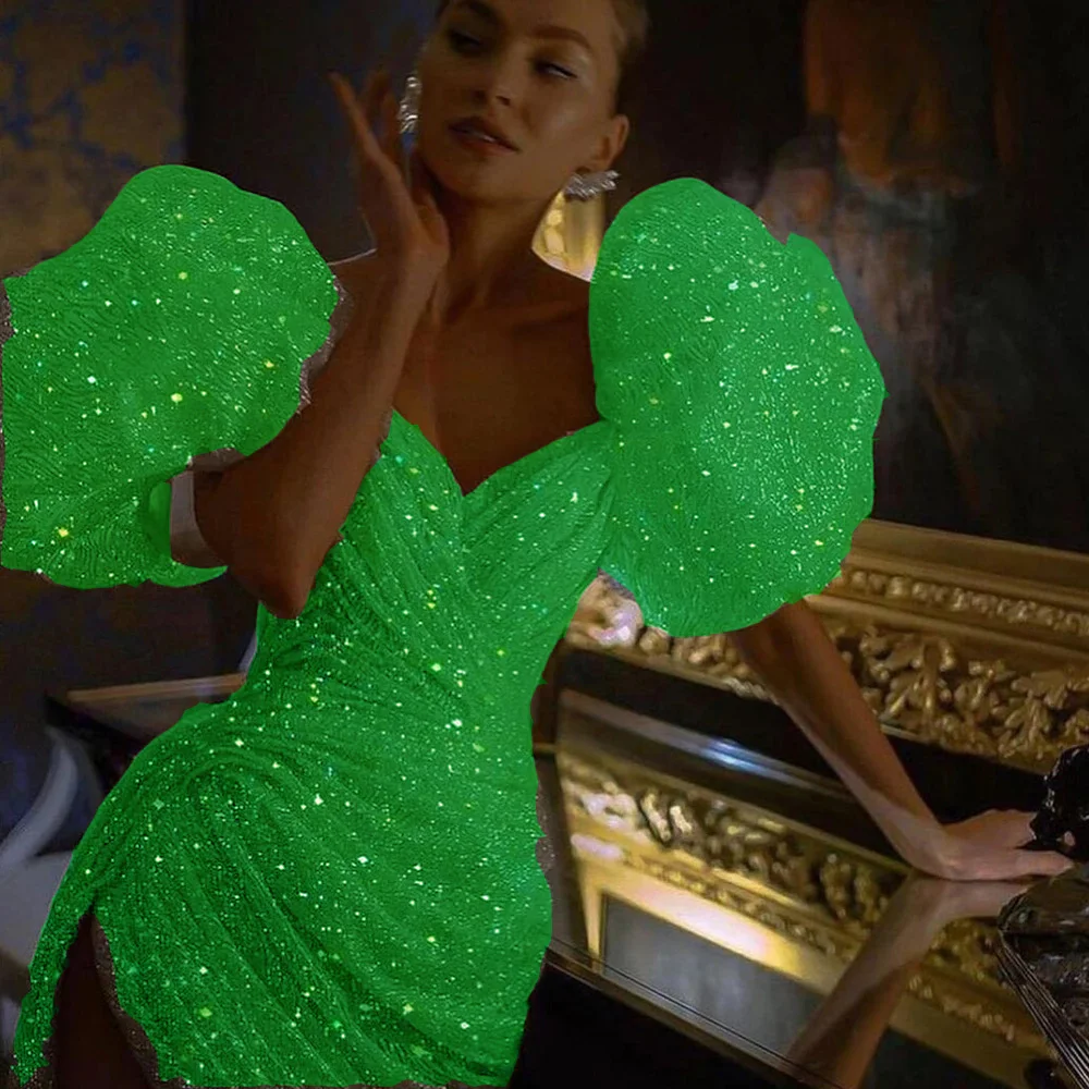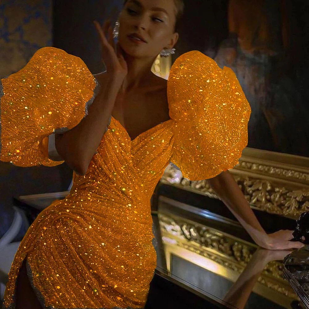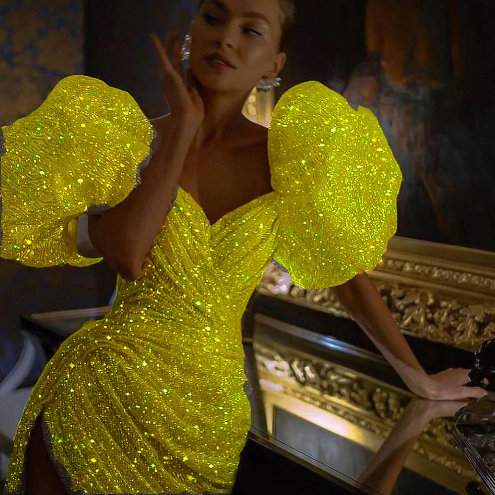 Женское вечернее платье, короткое платье до колен, с длинными рукав...