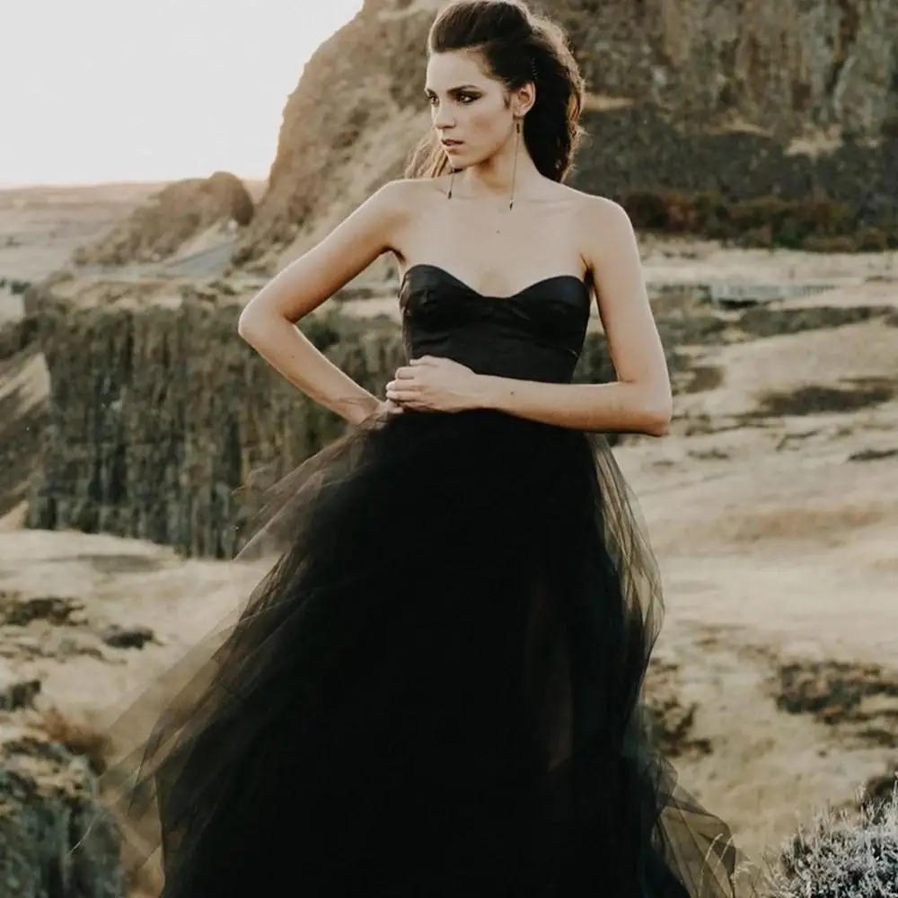 Женское атласное платье-пачка без бретелек, черное ТРАПЕЦИЕВИДНОЕ ПЛАТЬЕ невесты в готическом стиле, дизайнерское платье для вечерние ринки, 2022