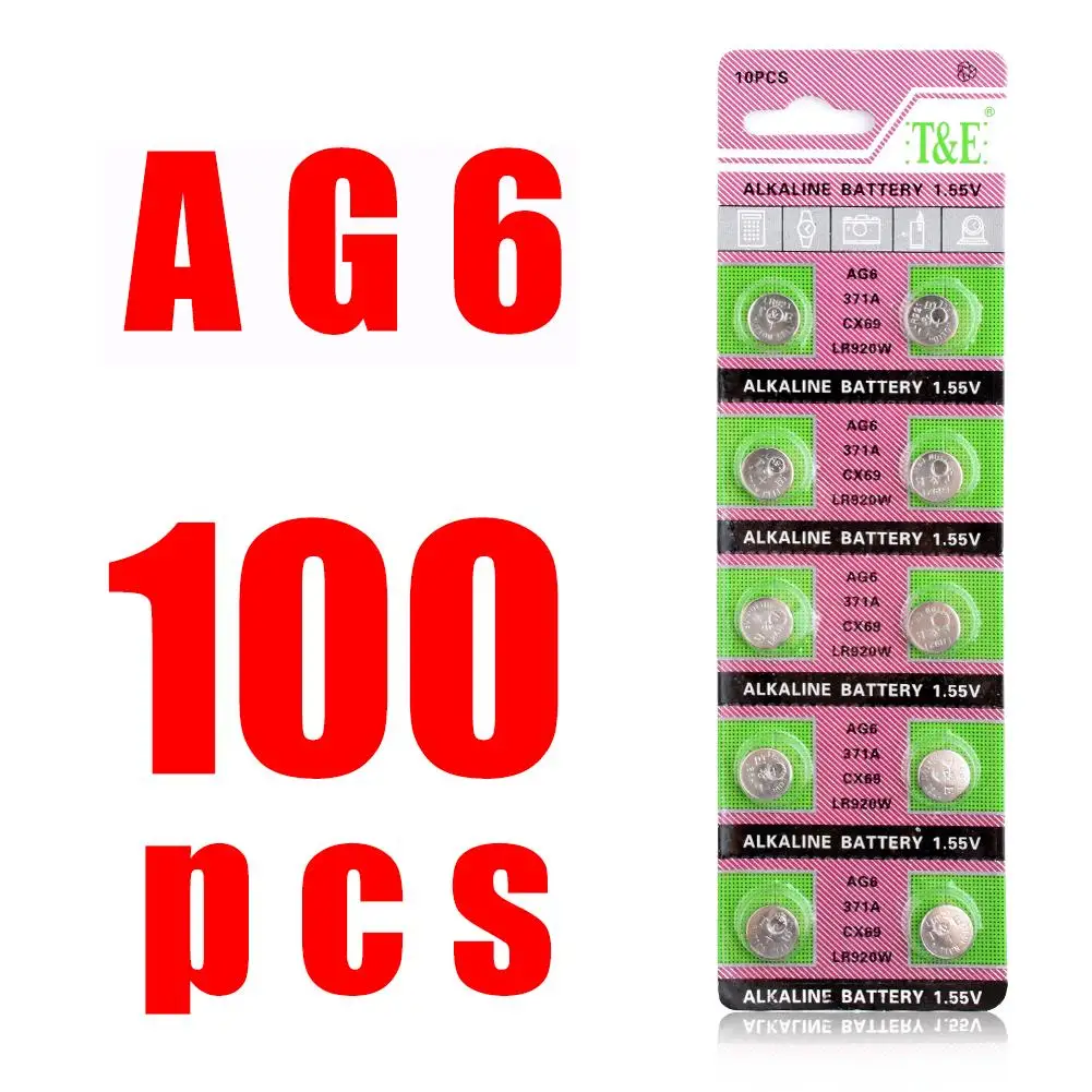 100 шт., батарейки AG6 LR920 1,55 в, 371A CX69 LR920W 371 L921 SR927 171 G6A AG 6