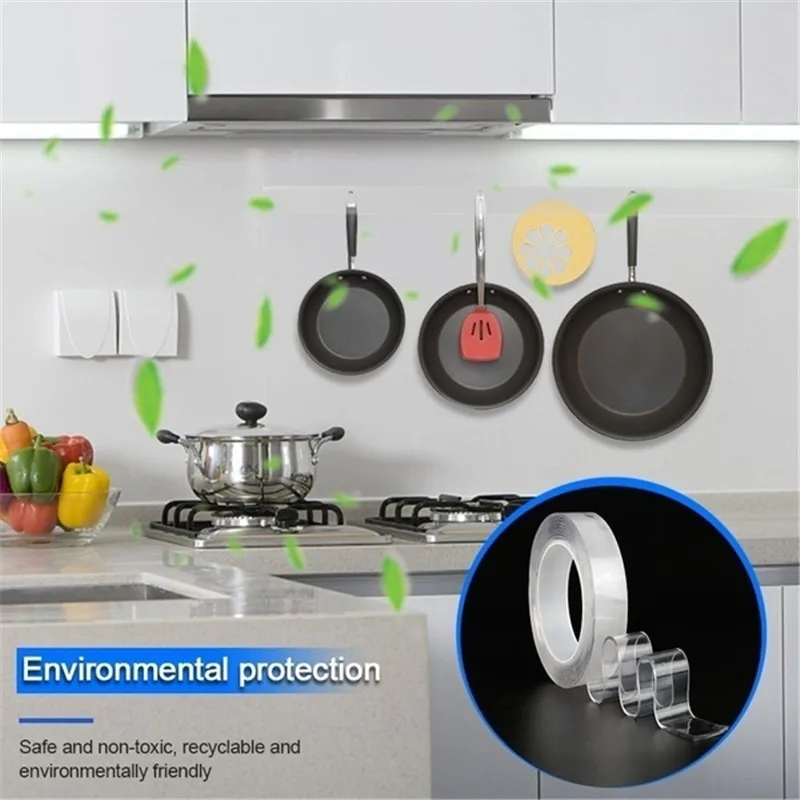 Лента нано прозрачная моющаяся на липучке, двухсторонняя клейкая лента, для мебели, ванной комнаты, товары для дома