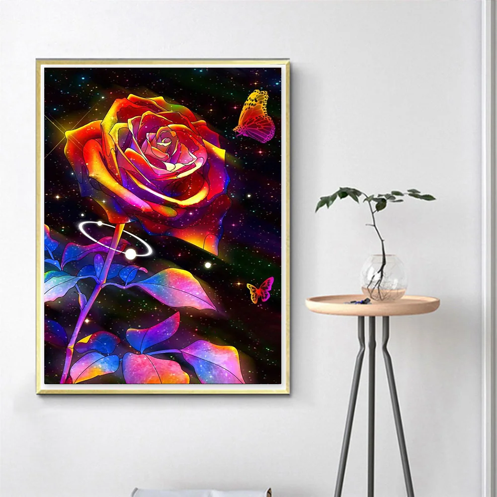 Алмазная 5D картина сделай сам, Набор для вышивки крестиком в виде цветка розы, бабочки, домашний декор, подарок