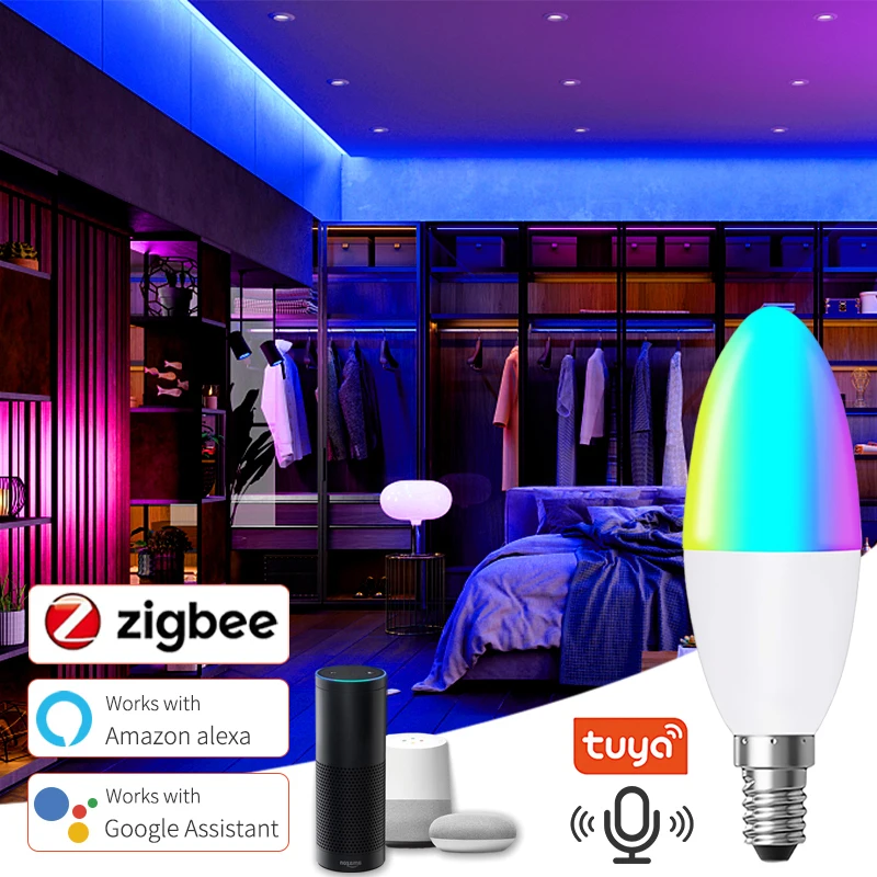 Умная лампа Aubess Zigbee 3,0, светодиодная лампочка E14 RGB + W + C с регулируемой яркостью, работает с умными вещами, Echo Plus, Alexa Home