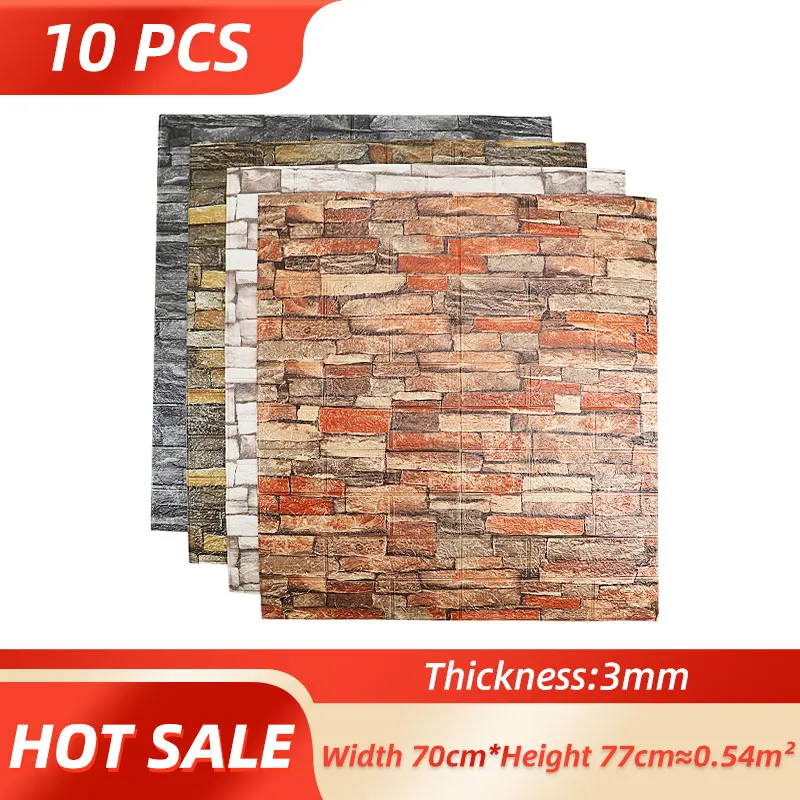 10 шт., самоклеящиеся 3D-наклейки на стену, с рисунком кирпича