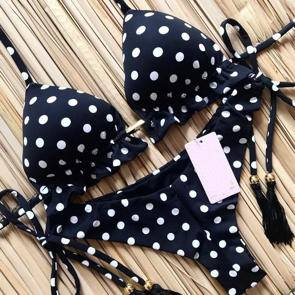 Бикини в горошек с низкой талией, новинка 2021, женский купальник, ...