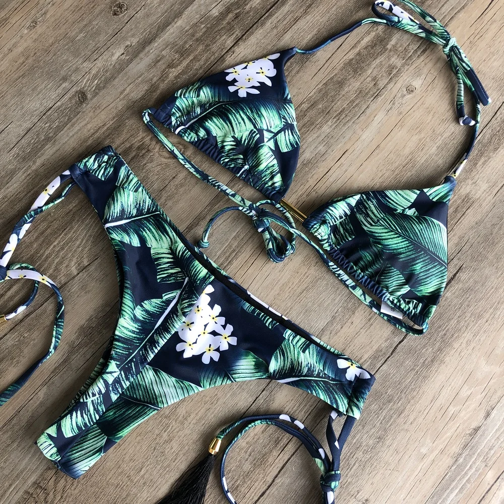 Сексуальный купальник с чашками пуш-ап, Бразильский бикини с тропич...