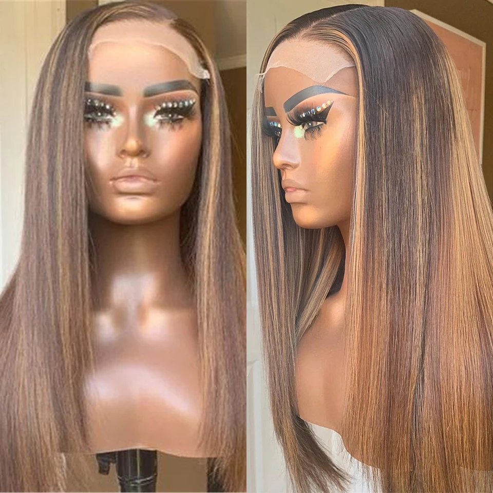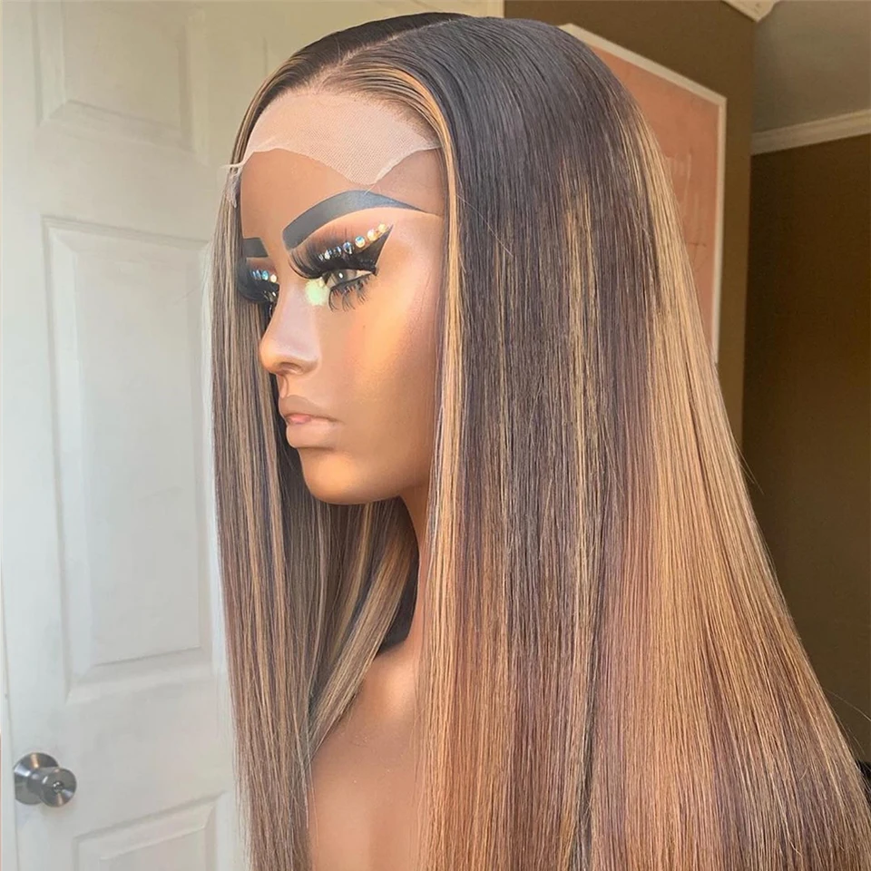 Парик из человеческих волос с эффектом хайлайтера, волнистые, светлые, коричневые, предварительно выщипанные бразильские волосы Remy 13x 4, парик на сетке спереди для женщин, плотность 180%