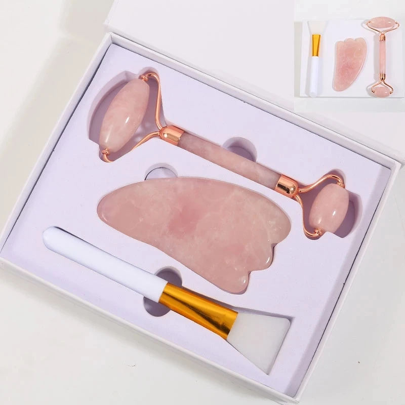 Массажер для лица-Подъемный розовый КВАРЦЕВЫЙ ролик натуральный нефрит ролик для массажа лица для похудения Нефритовая соскабливающая маска щетка набор из трех предметов