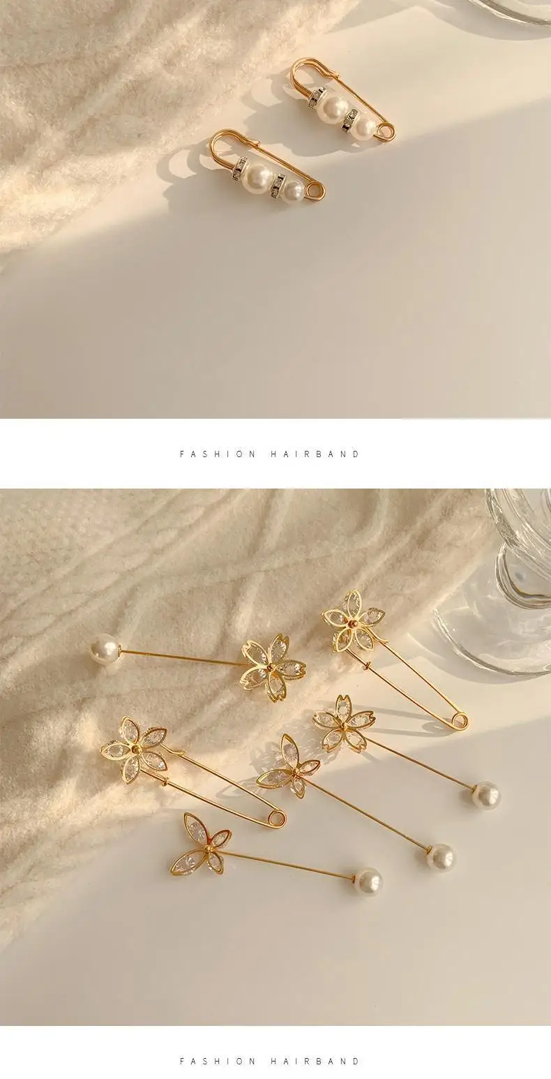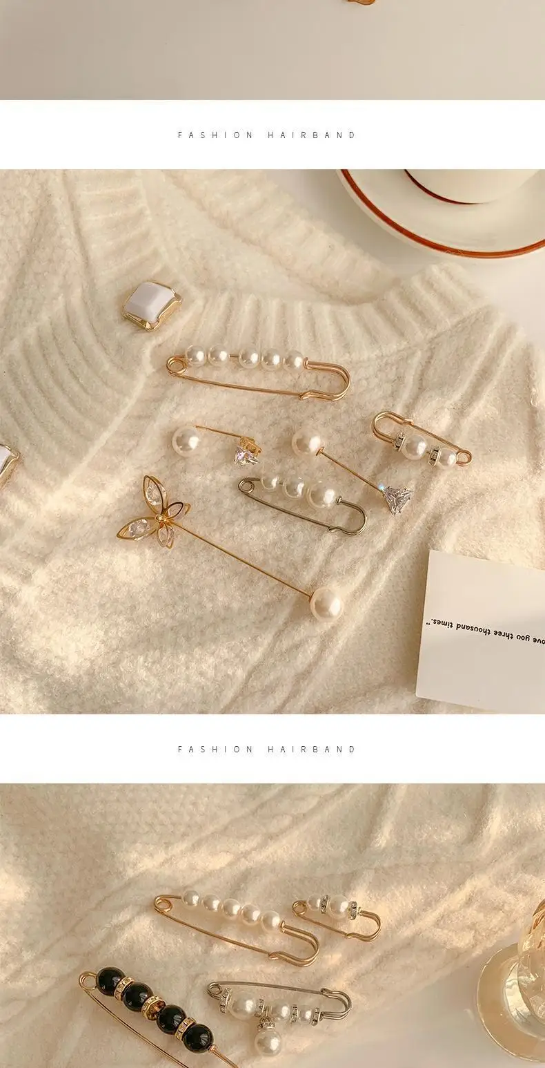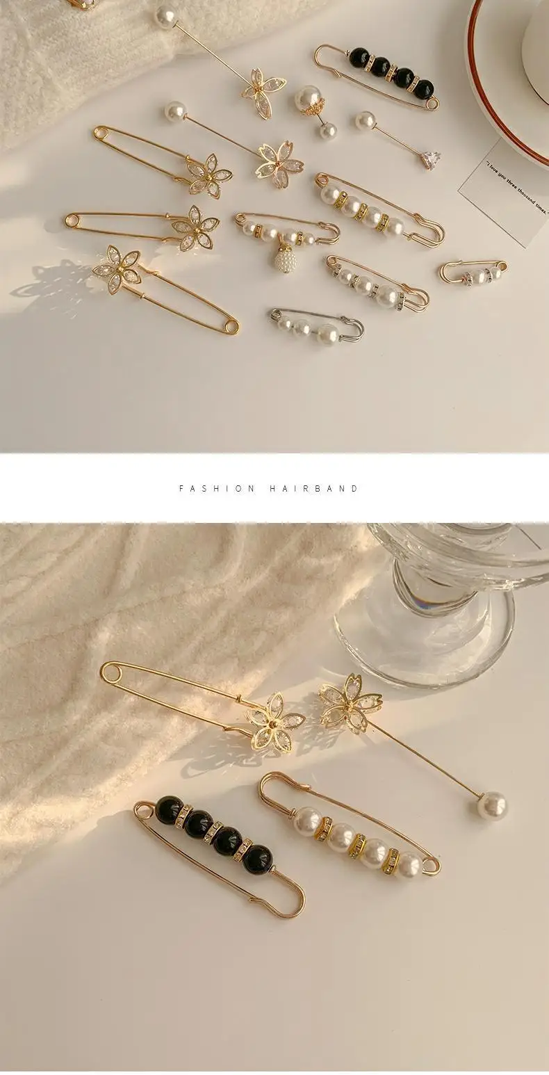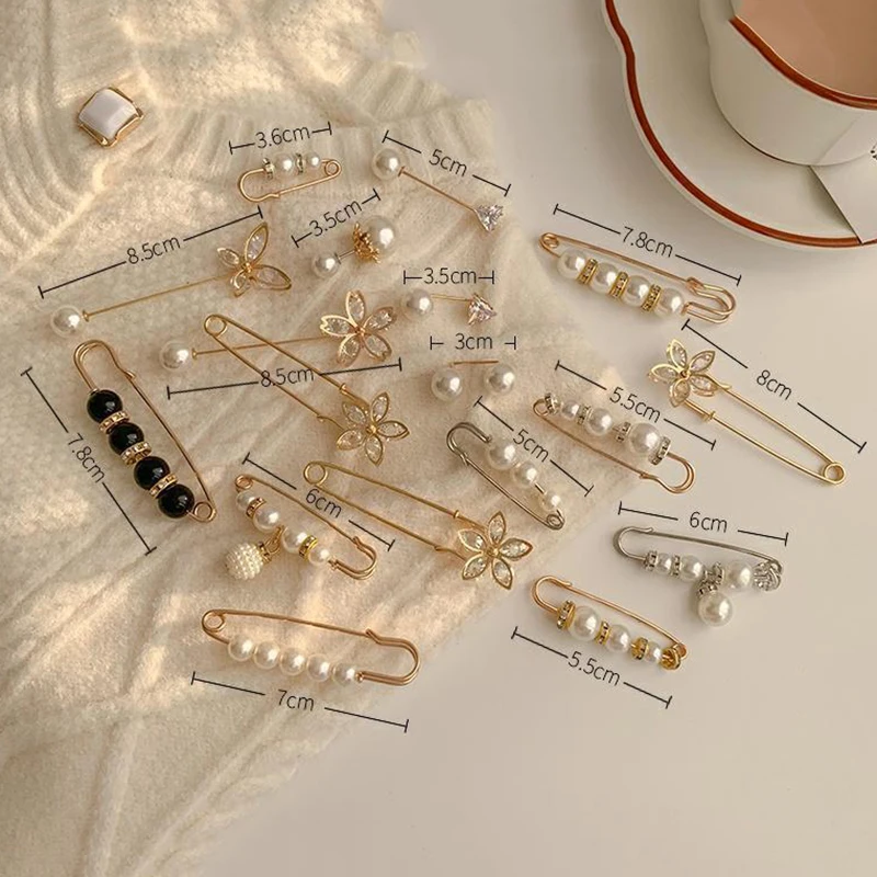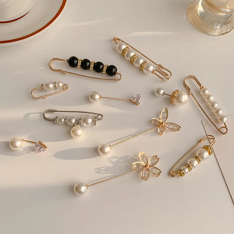 Набор модных брошей с жемчугом, затягивающие булавки для пояса, маленькие Броши Стразы с открывающимся низом, металлические аксессуары сделай сам