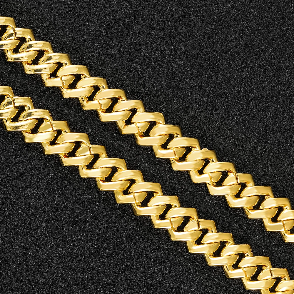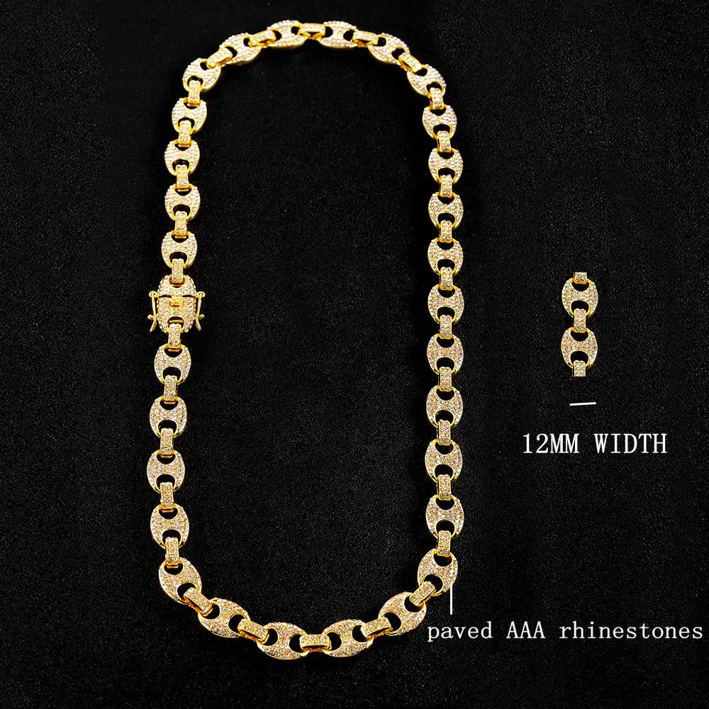 Iced Out кубинская звеньевая цепочка дизайн: это одна из самых популярных и модная цепочка ожерелье. Модный дизайн для любителей хип-хопа, прочная и простая цепочка для ожерелья, изготовленная с покрытием из золота 18 К и серебра.