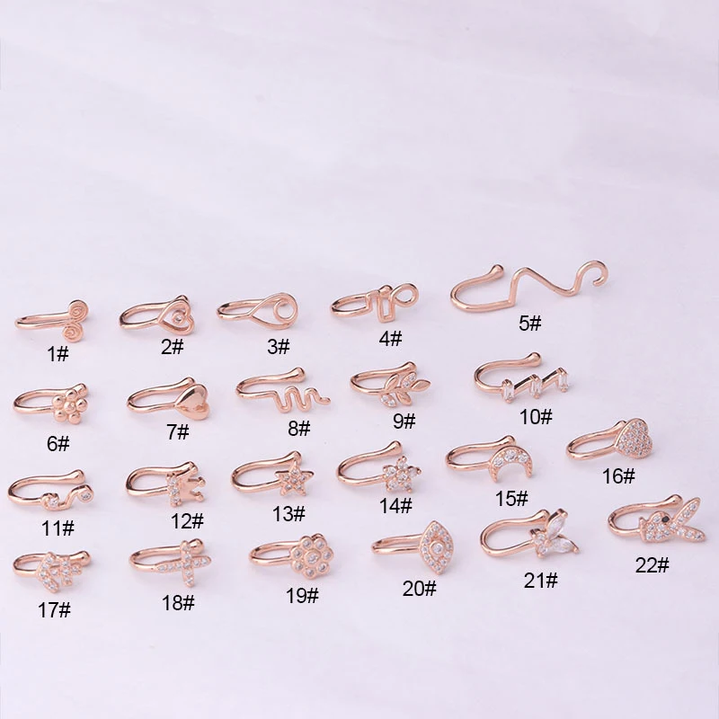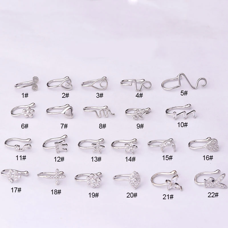 1 шт., поддельный пирсинг-клипса, кольцо для носа, манжета, ювелирное изделие для тела для женщин 2021, новые трендовые ушные манжеты, сердце, крест, цветы, клипса, кольца для носа