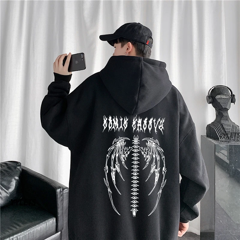 Уличная Harajuku Толстовка Y2K топы для девочек Ретро готический большой капюшон панк аниме печать одежда хип-хоп High Street свитшоты