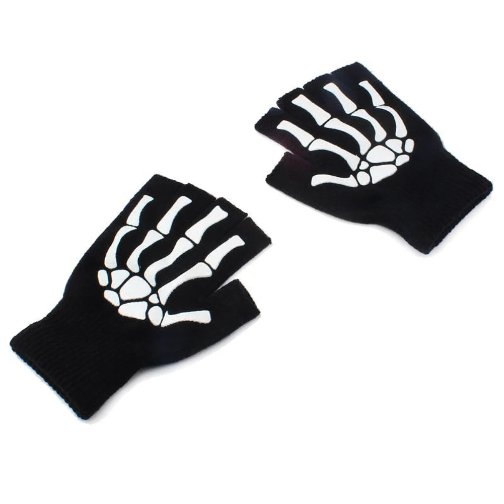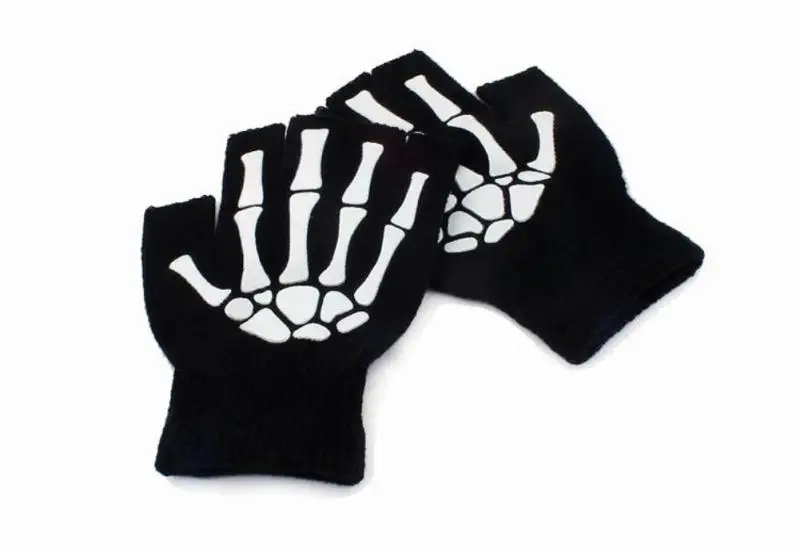 Вязаные перчатки унисекс с черепом, Нескользящие митенки для езды н...