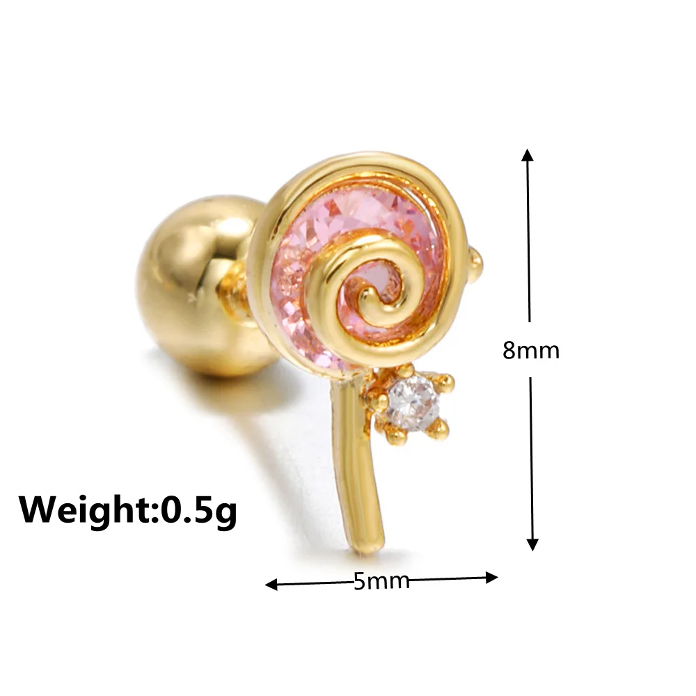 1 шт. новые милые серьги-гвоздики Ins в виде мороженого, реальное позолоченное сердце, конусные серьги для женщин и девушек, модные ювелирные изделия для пирсинга