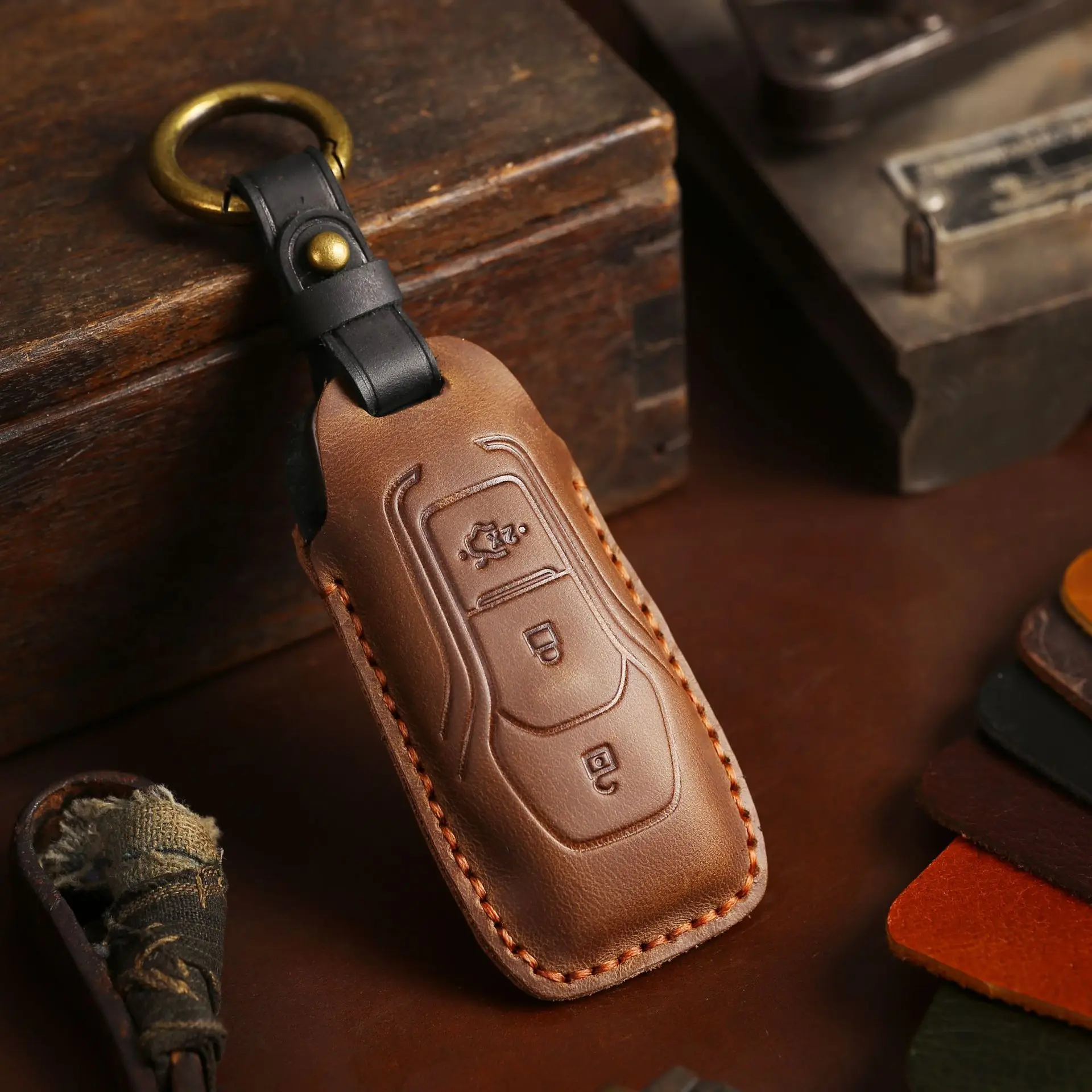 Кожаный Автомобильный чехол для ключа с дистанционным управлением, чехол-держатель для Ford Focus 3 4 ST Mondeo 5 MK5 Mustang Explorer Edge Fiesta Kuga MK3 4