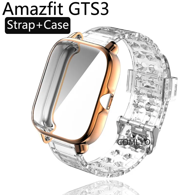 2 в 1 для Amazfit GTS 3 GTS3, ремешок, прозрачный ремешок, браслет, умные часы, ТПУ, полная Защита, Чехол, крышка, рамка, корпус, бампер