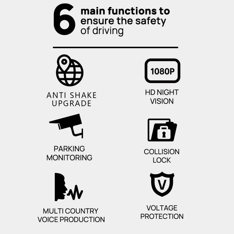 ✔6. Функция мониторинга парковки может быть настроена: если во время парковки транспортного средства происходит Аномальная вибрация или столкновение, регистратор автоматически записывает 30S и выше для обеспечения безопасности транспортного средства