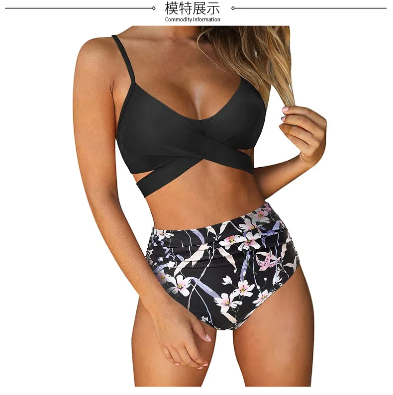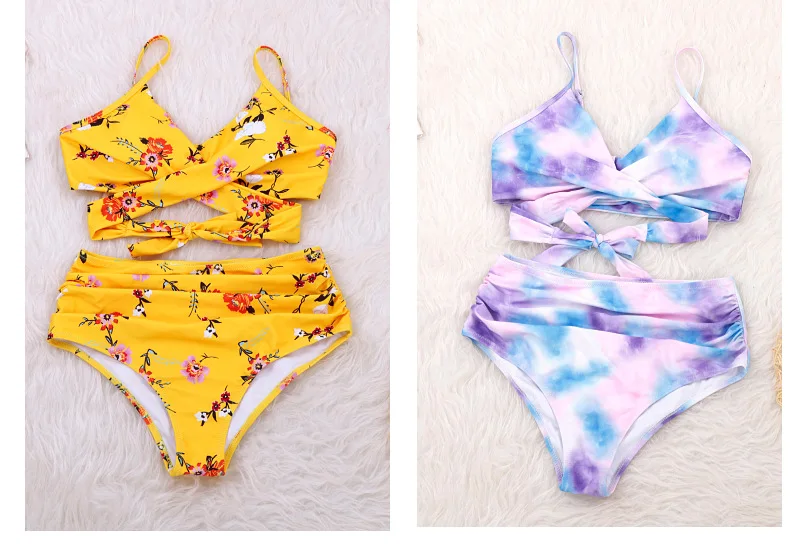 Женское бикини с завышенной талией, соблазнительный однотонный купальник с перекрестными лямками, бикини большого размера, пляжный купальник с завышенной талией