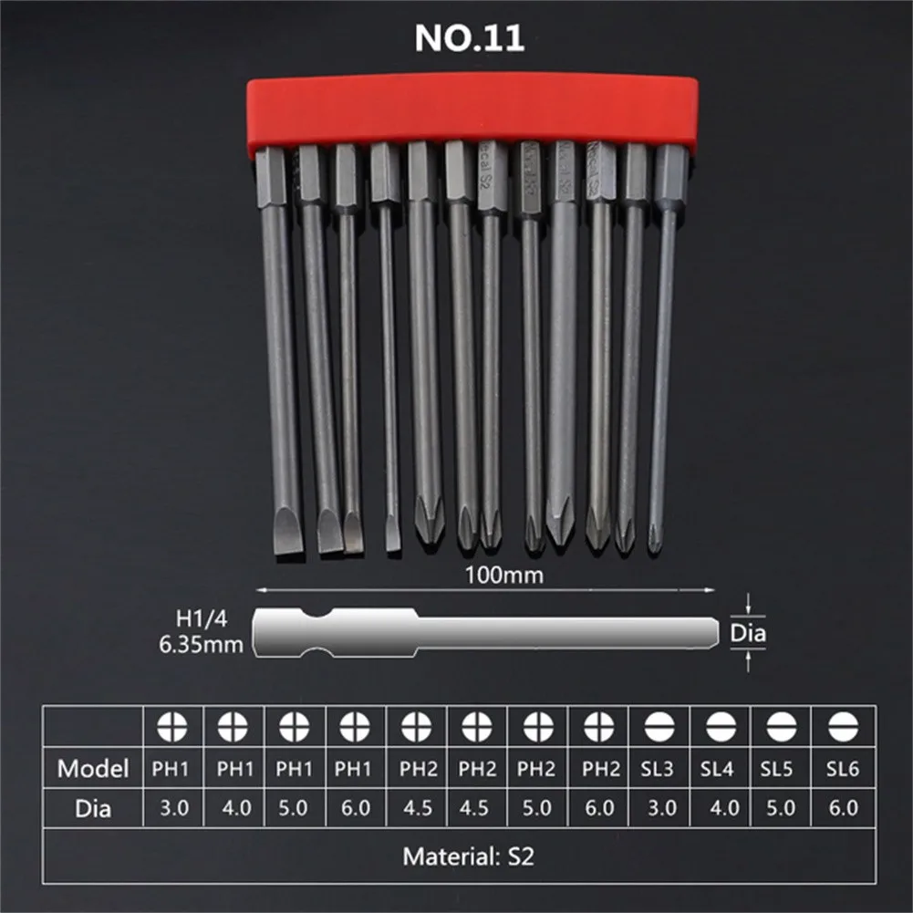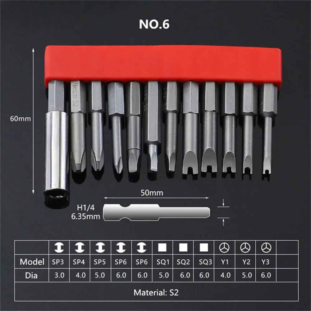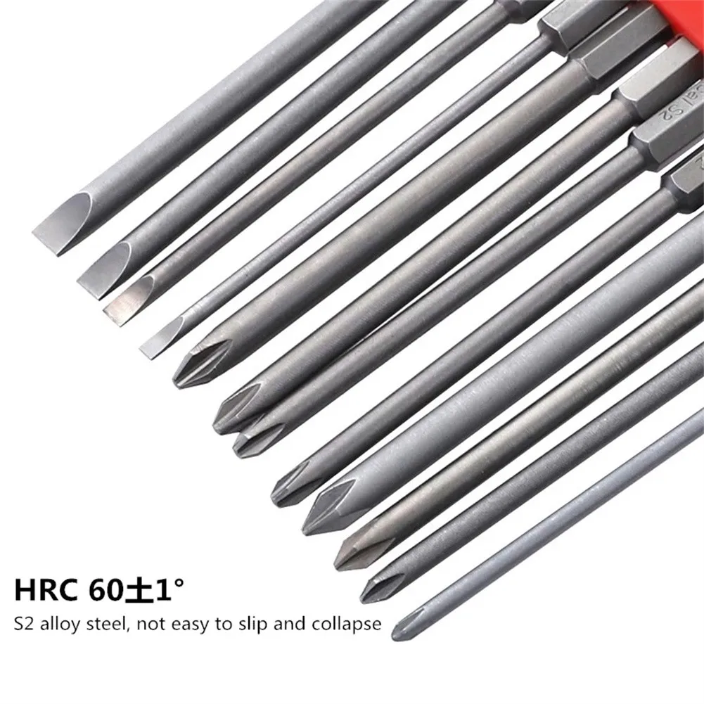 12 шт. набор магнитных отверток S2 из легированной стали с прорезями крестообразной головкой 1/4 "шестигранные электрические отвертки