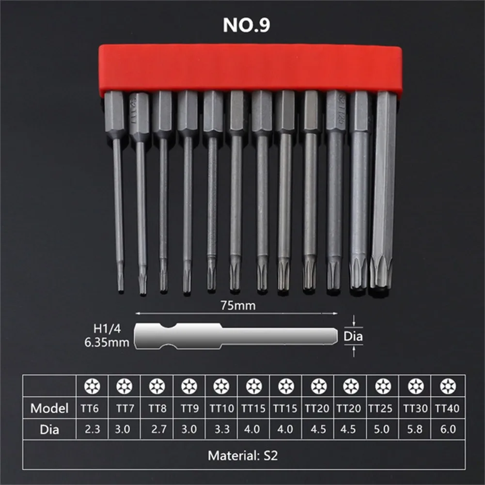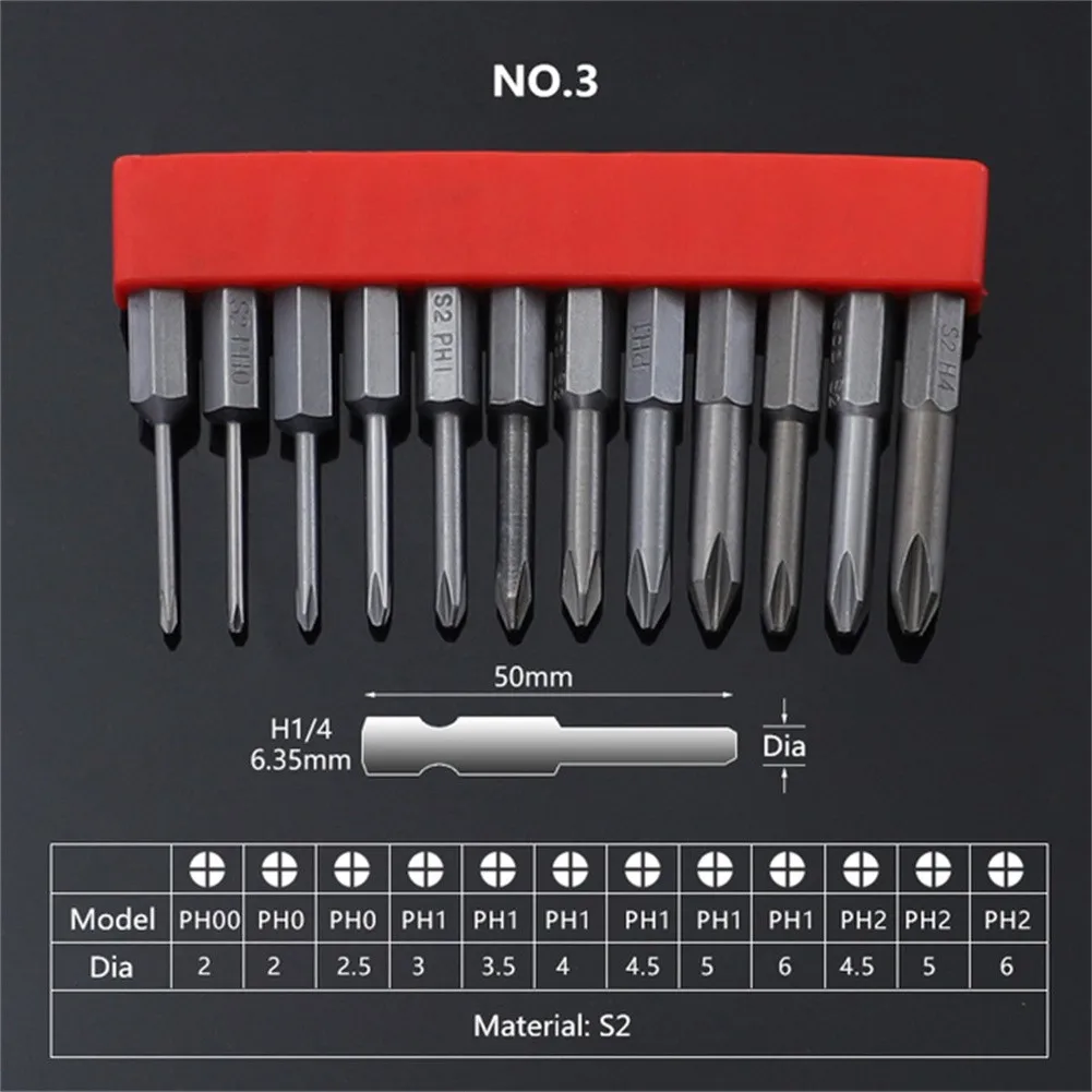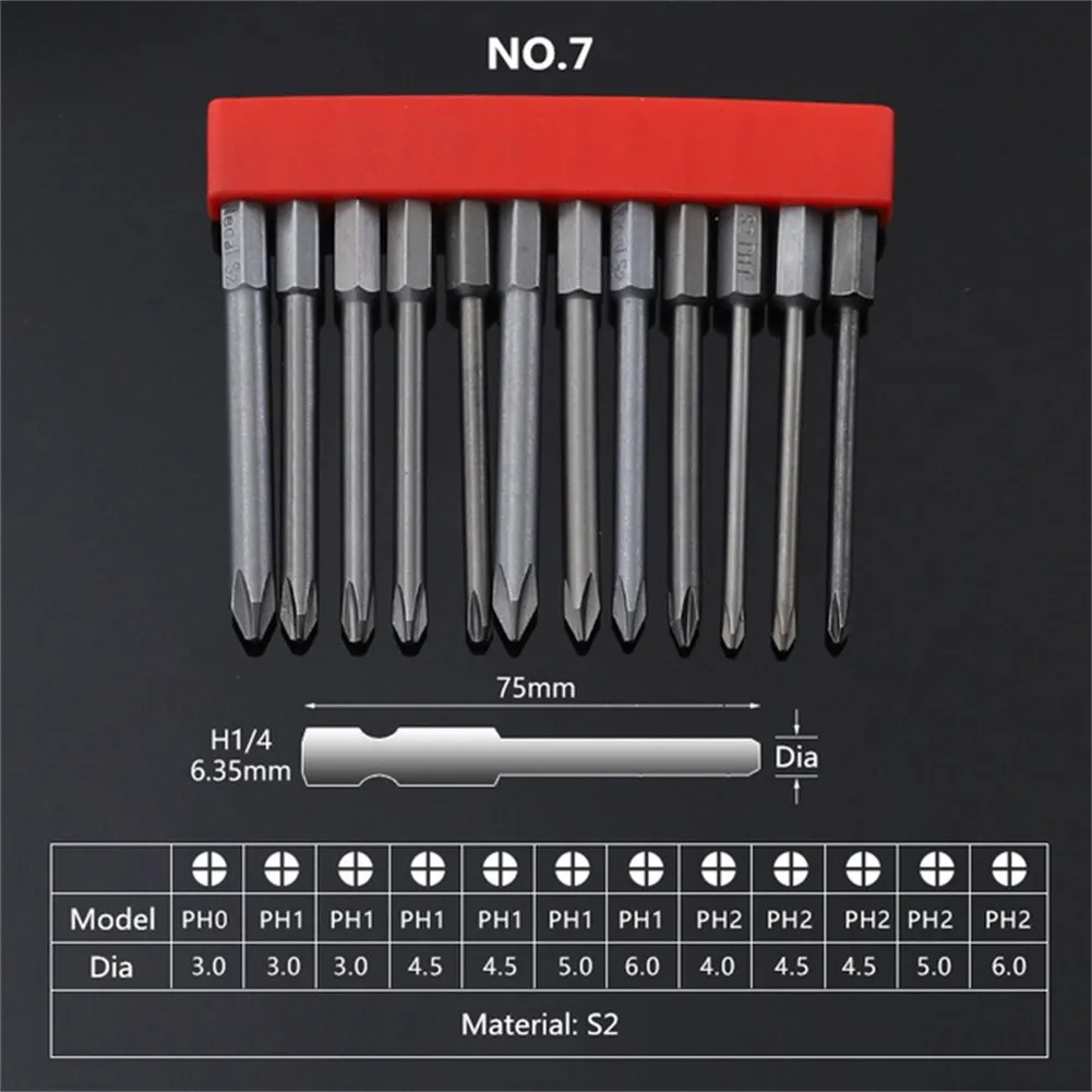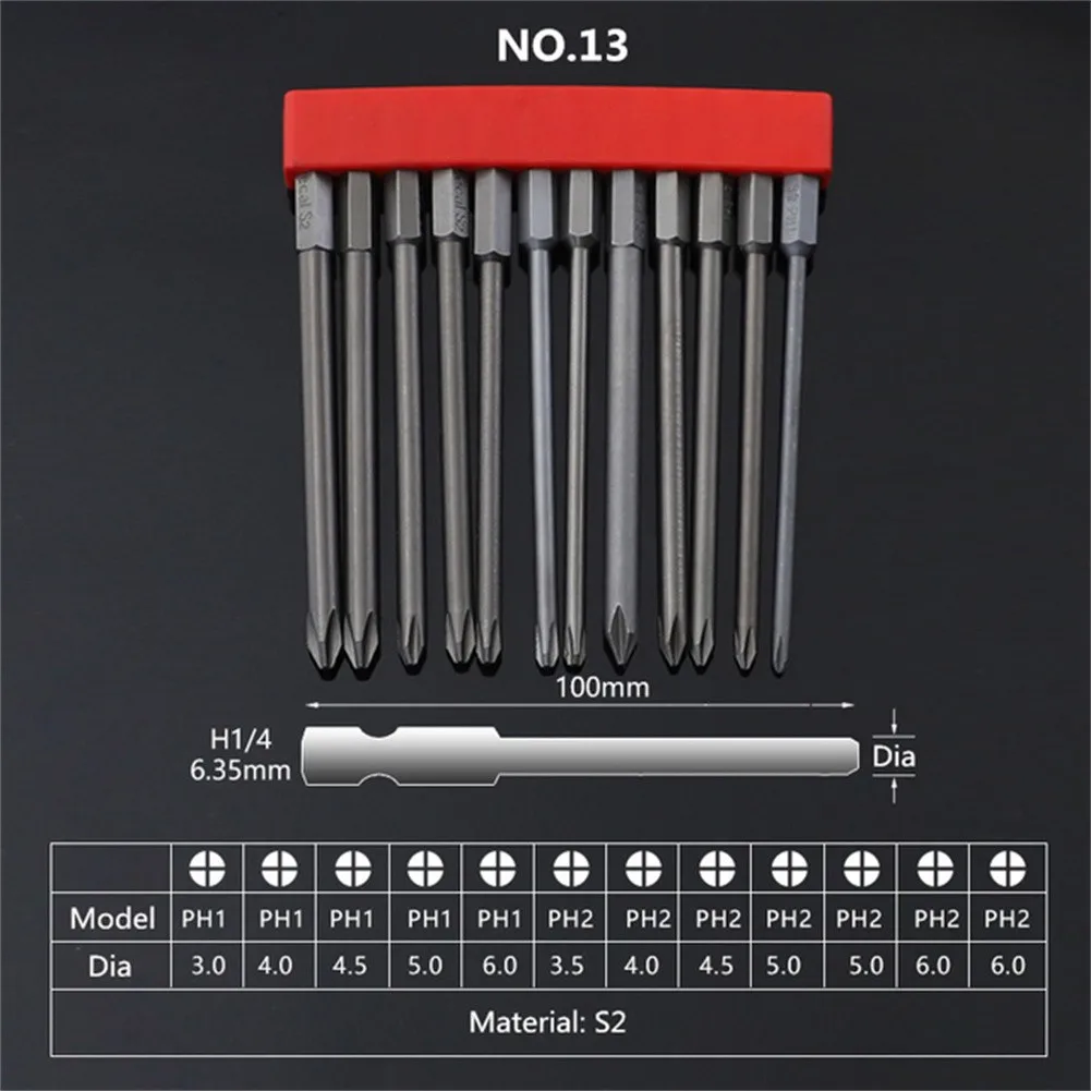 12 шт. набор магнитных отверток S2 из легированной стали с прорезями крестообразной головкой 1/4 "шестигранные электрические отвертки