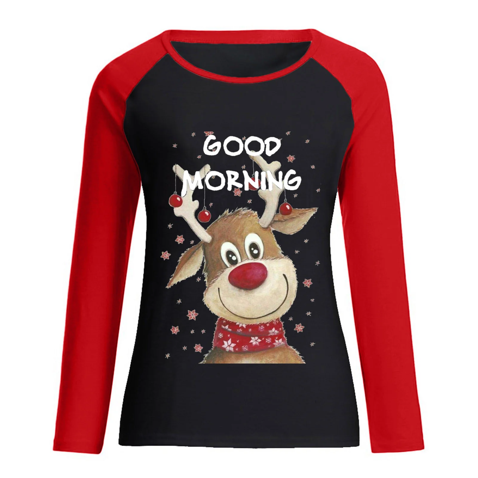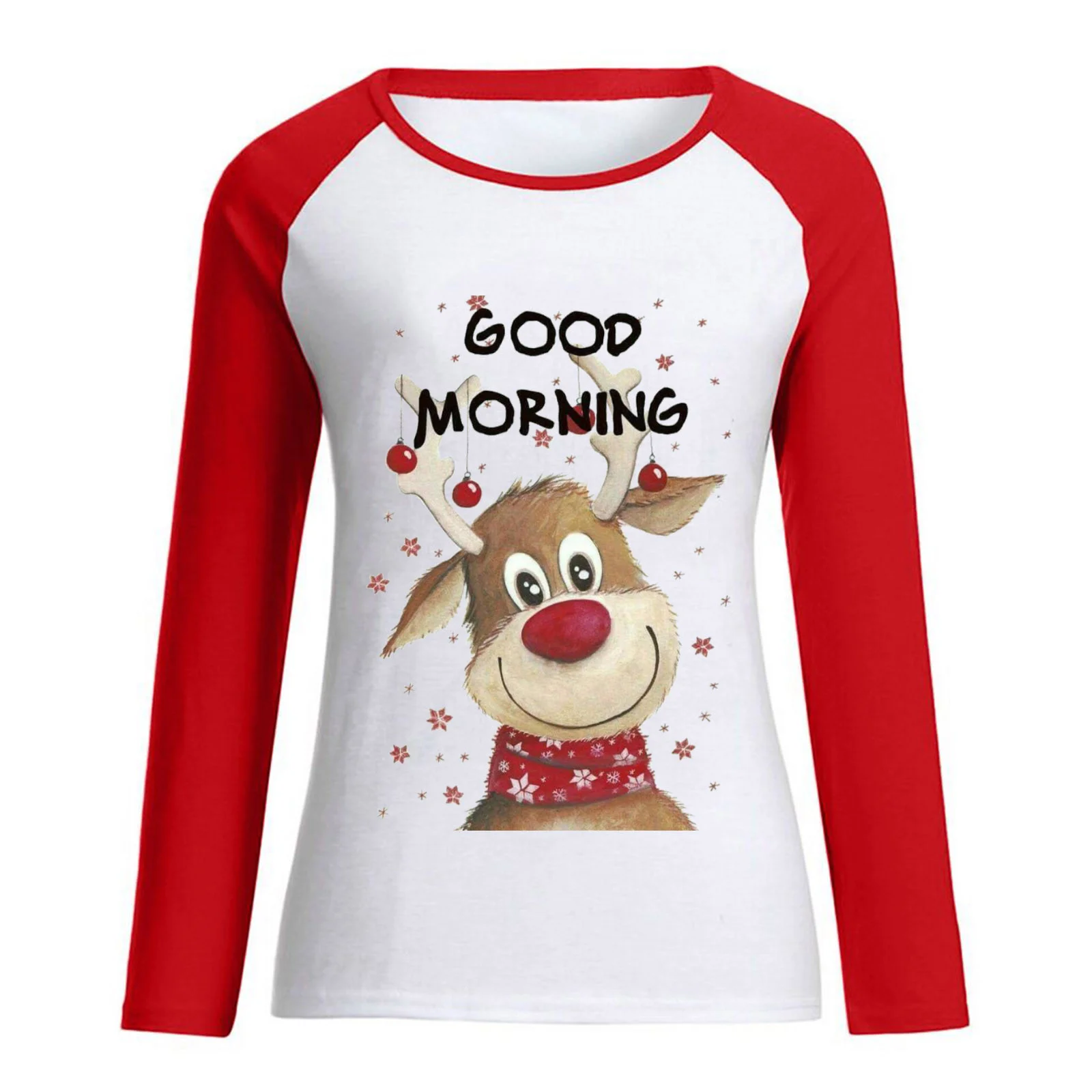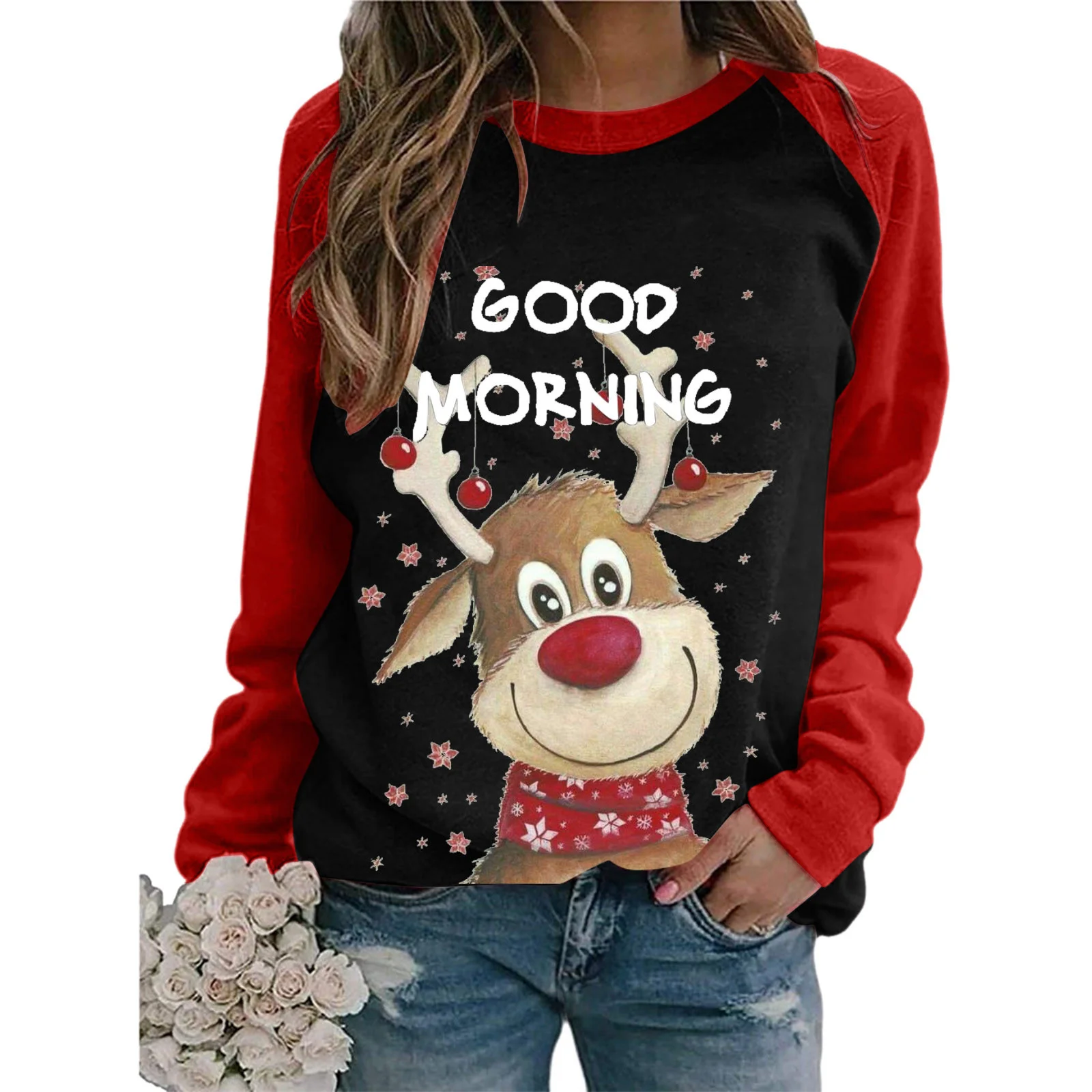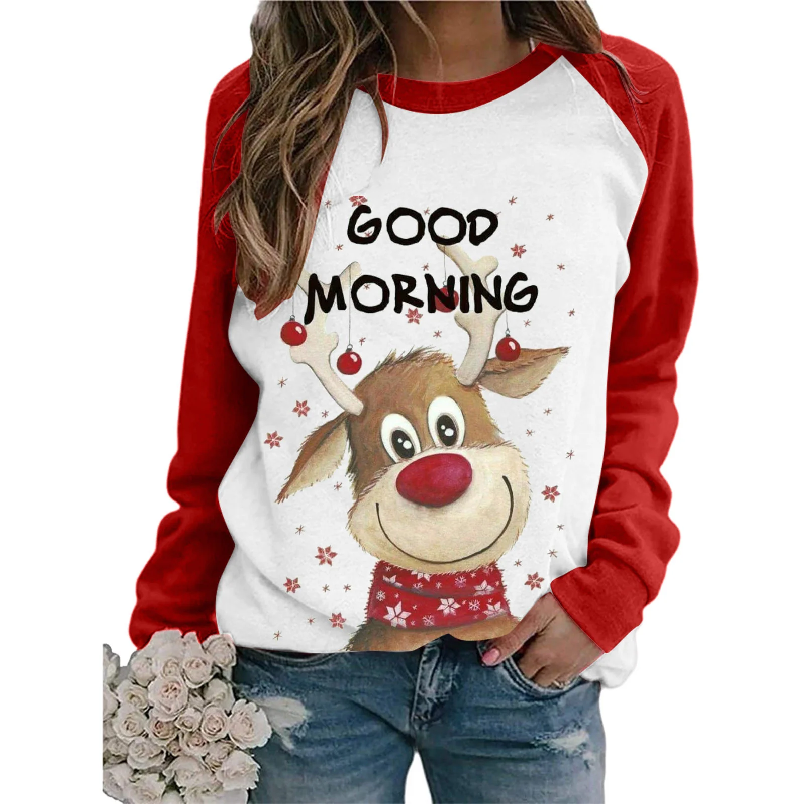 Забавный Милый принт лося с длинным рукавом Рождественская женская ...
