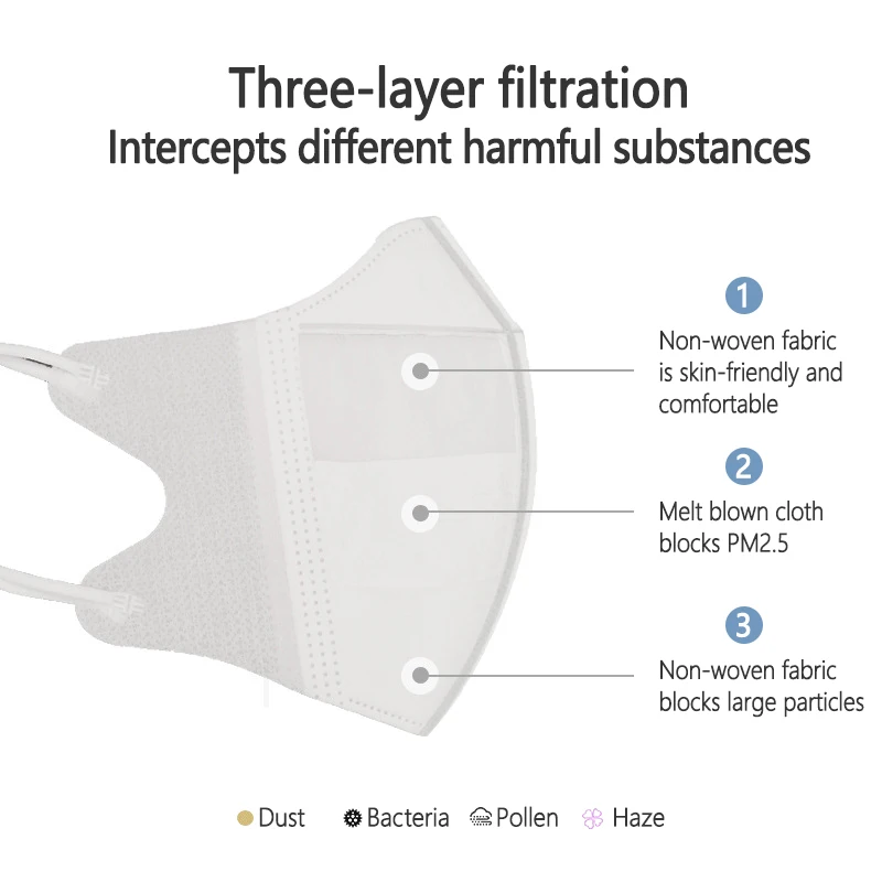 Маска может изолировать мелкие частицы и плотно прилегает к лицу, ее нелегко пропускать воздух с периферии, а эффективность фильтрации твердых частиц может достигать 95% при стандартных условиях.