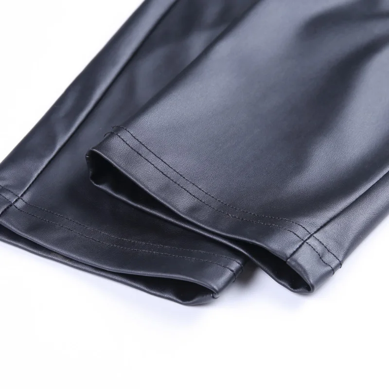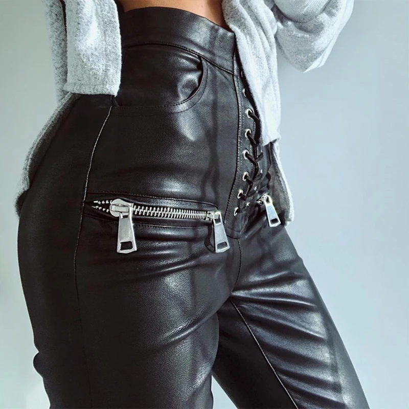 Модные черные брюки-карандаш из искусственной кожи на шнуровке с вы...
