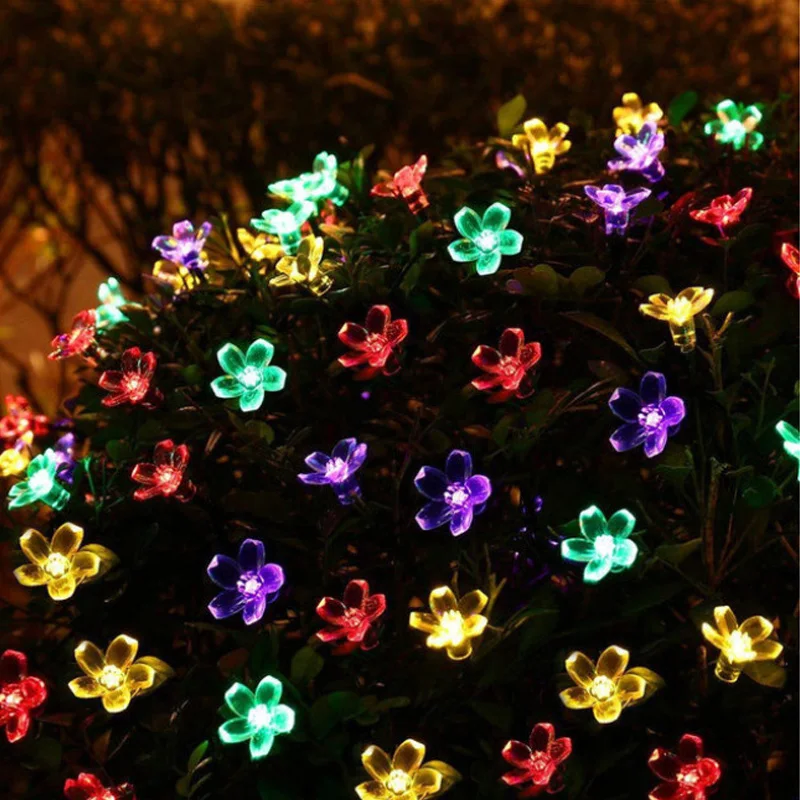 Светодиодная гирлянсветильник с вишневым цветком 712 м на солнечной батарее для украшения дома и сада, водонепроницаесветильник Гирлянда для рождественской вечеринки, уличная декоративная лампа