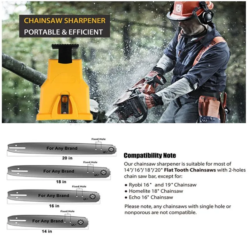Портативная точилка для зубов цепной пилы, инструмент для быстрой установки цепной пилыбензиновой пилы для направляющей цепи 14-20 дюймов