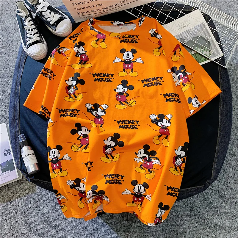 Футболка средней длины с коротким рукавом и изображением Микки-Мауса, Женский Топ в иностранном стиле, Новинка лета 2022, Свободный Повседневный Топ для студентов