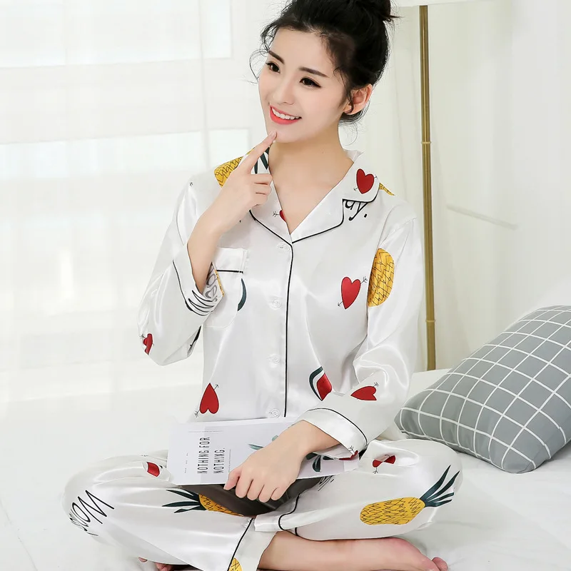 Пижама женская с принтом, одежда для сна с длинным рукавом, шелкова...