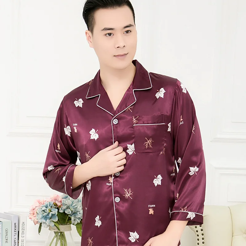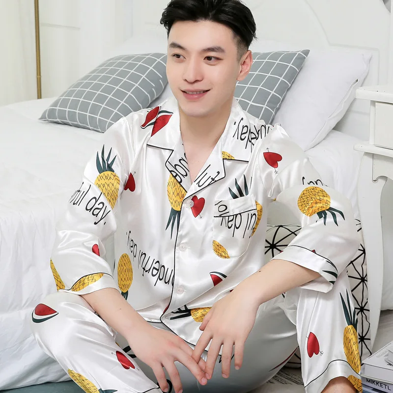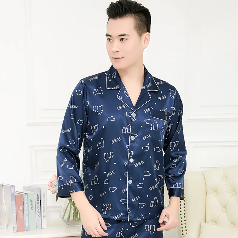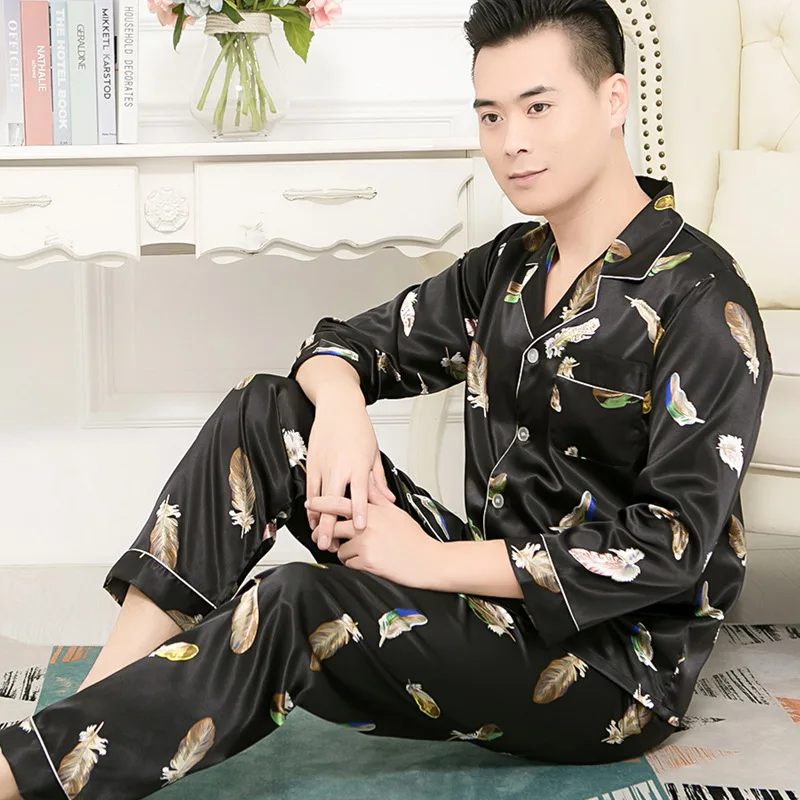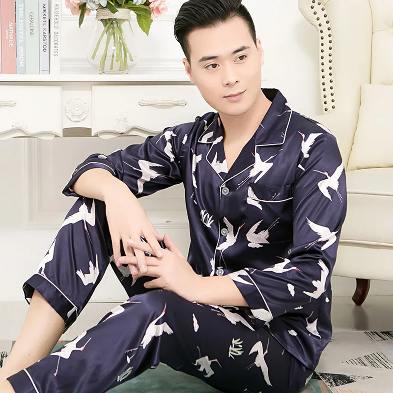 Пижамы для пар, Шелковая пижама с длинными рукавами, набор шелковых...