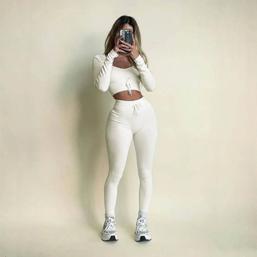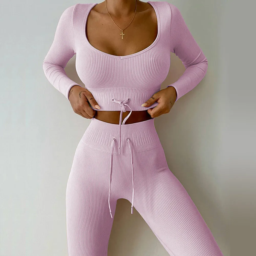 Бесшовный вязаный комплект из 2 предметов с длинным рукавом и легги...