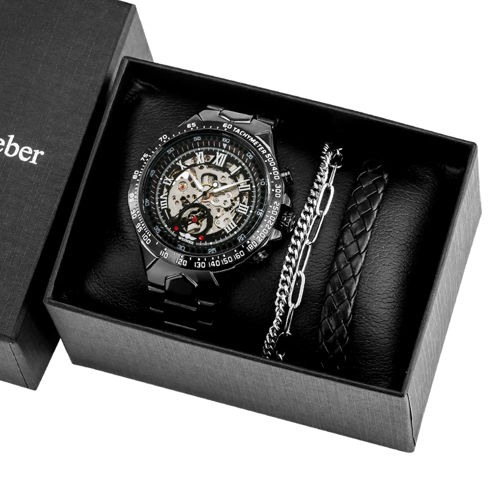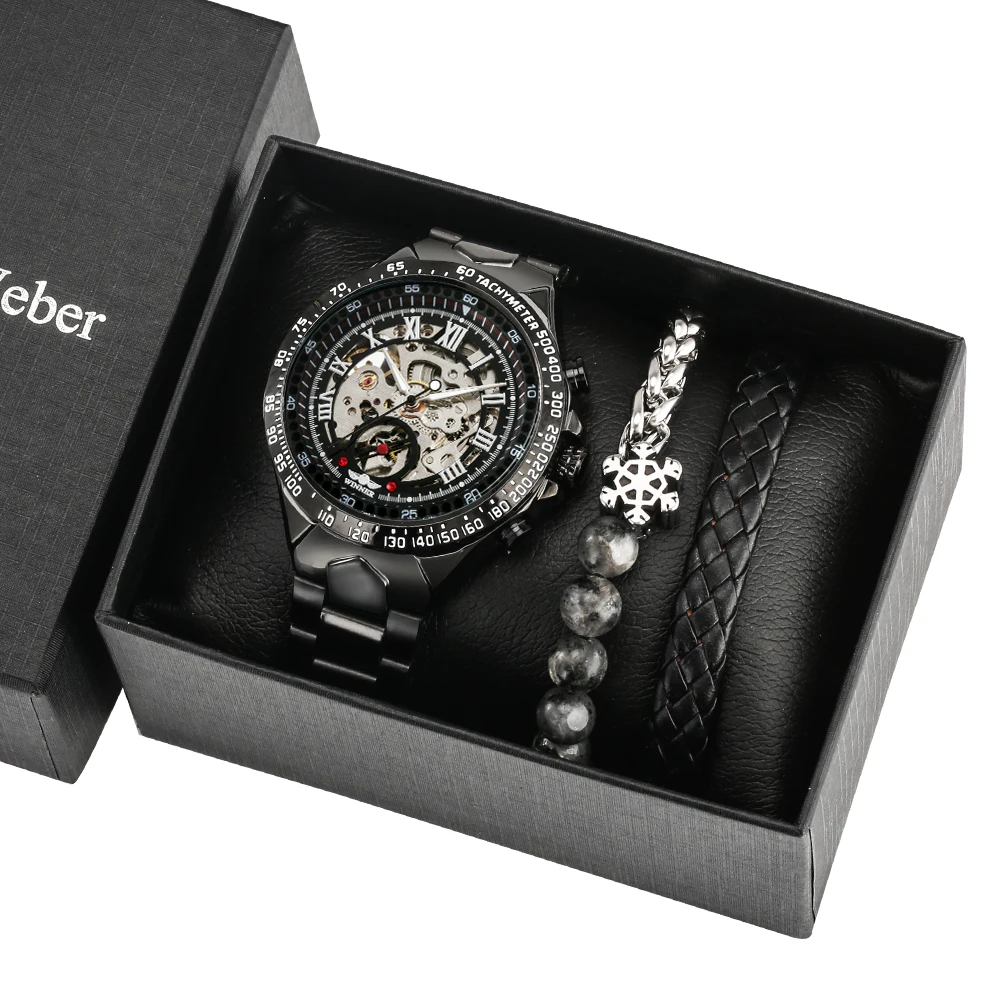 Мужской механический с Циферблатом Часы Браслет Подарочный набор часы из нержавеющей стали для отдыха Бизнес Роскошные наручные часы с изысканной подарочной коробкой