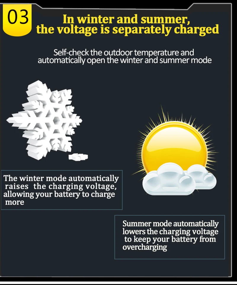 Особенности:• 3 этап автоматический индикация во время зарядки:• Это полностью автоматическое зарядное устройство с 3 этапами зарядки.• Автоматическая зарядка защищает аккумулятор от перезарядки. Таким образом, вы можете оставить зарядное устройство, подключенное к батарее на неопределенный срок.• 3 зарядные устройства подходят для большинства типов аккумуляторов, включая кальций, гель и AGM, мокрый батарей. Они также могут помочь восстановить сливные и сульфированные батареи.• Типы батарей: большинство типов свинцово-кислотных батарей, включая кальций, гель и AGM, влажные и т. Д.• Защита полярности: Да• Выходная короткая Защита: да• Защита без подключения аккумулятора: Да• Защита от перенапряжения: Да• Защита от перегрева: Да• Охлаждение: Вентилятор