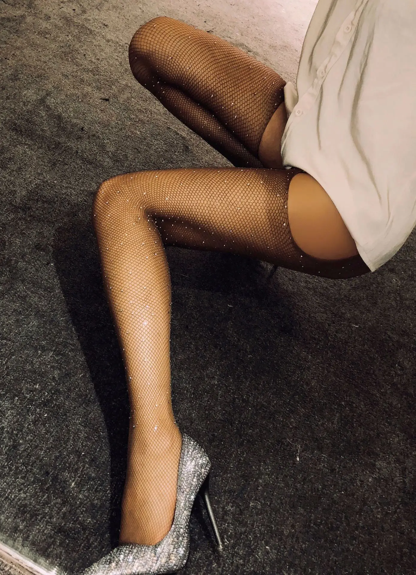 Бриллианты чулки, колготки в сетку эластичные колготки с Стразы чер...