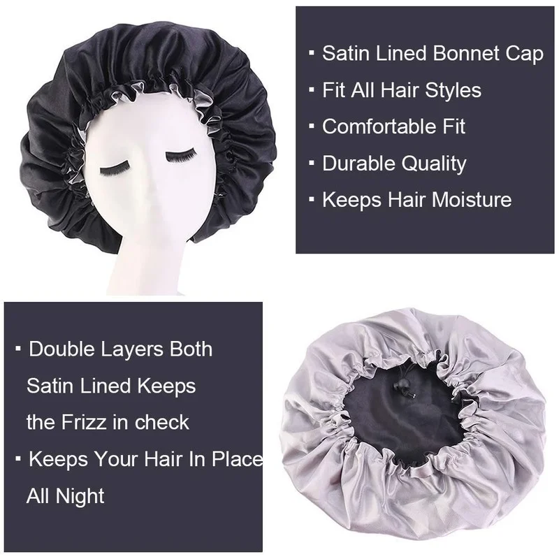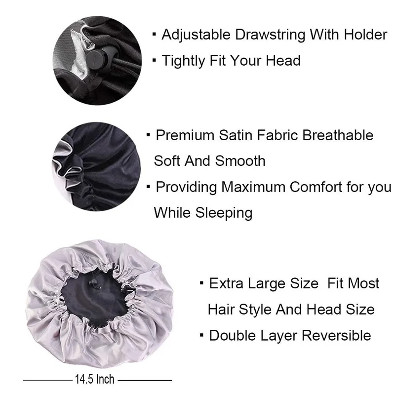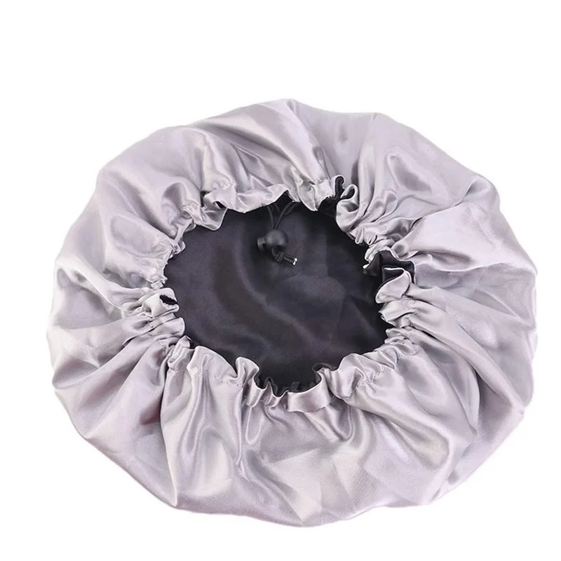Женская атласная шапка, шапка для сна, двухслойная Регулируемая шапка, невидимый плоский Шелковый Круглый Уход за волосами, головной убор для церемонии