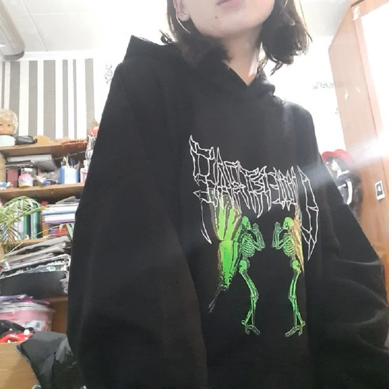 Готическая уличная одежда, пуловер с бабочкой и скелетом, свитшот, топ, Повседневная Свободная Женская толстовка в стиле ольччан с принтом черепов, хип-хоп, панк, Харадзюку
