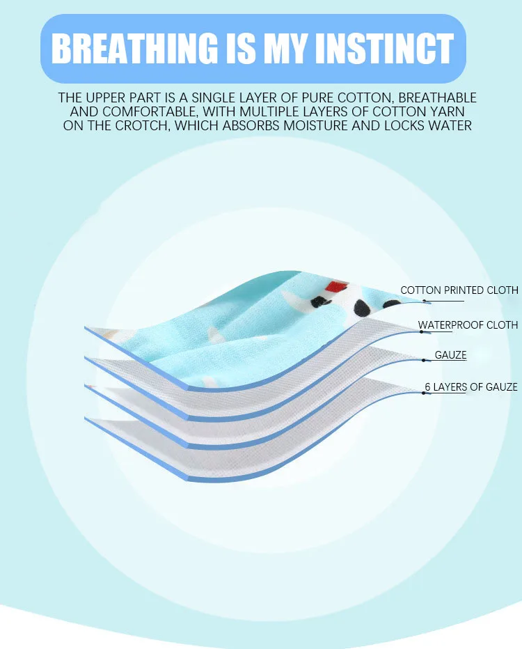 6 слоев милых детских подгузников, многоразовые подгузники, тканевые подгузники, моющиеся, Детские хлопковые тренировочные штаны для малышей, нижнее белье