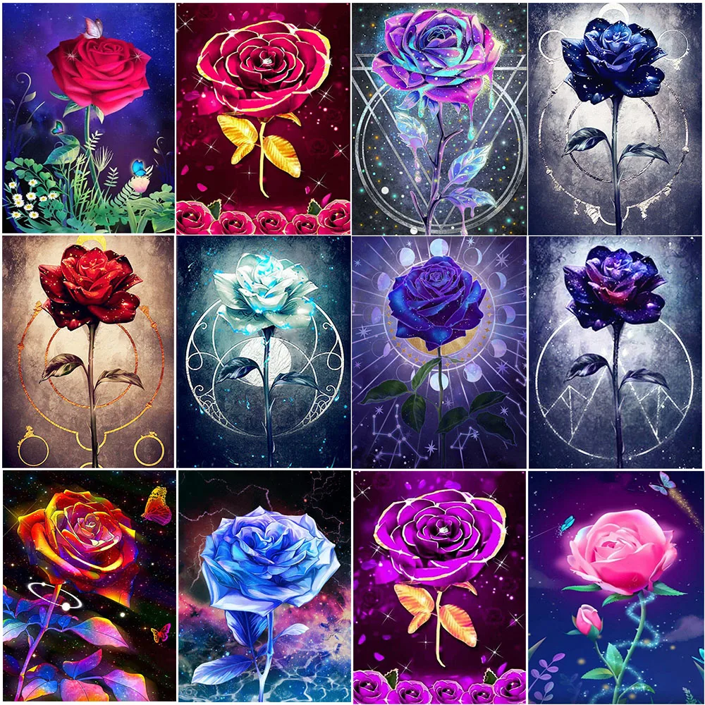 Полноразмерная квадратнаякруглая 5D алмазная живопись, цветы, розы,...